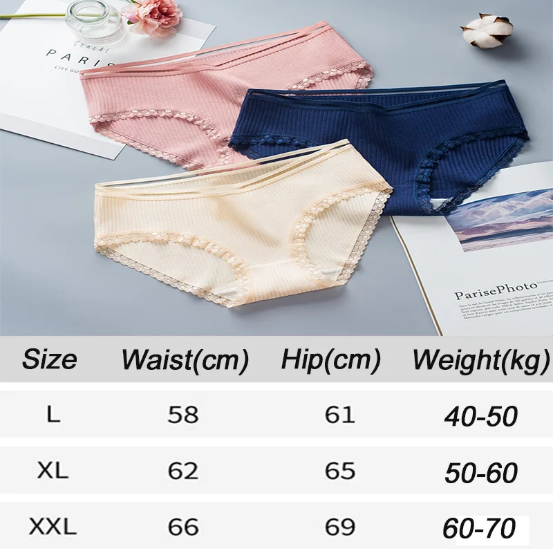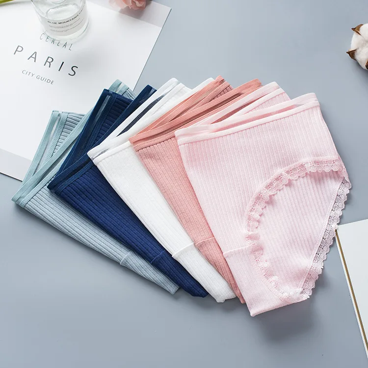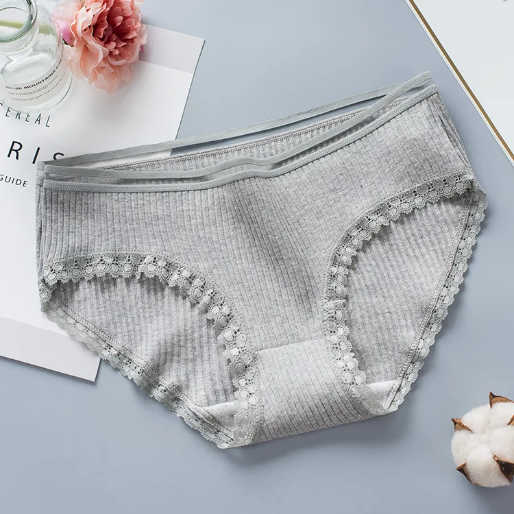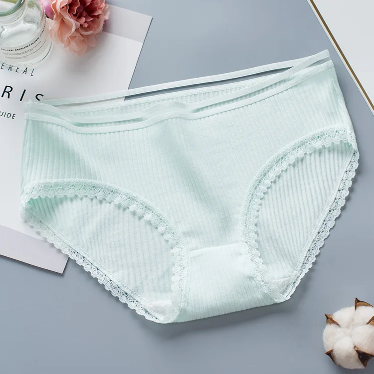 Женские хлопковые трусики, женские дышащие трусики с кружевными кра...