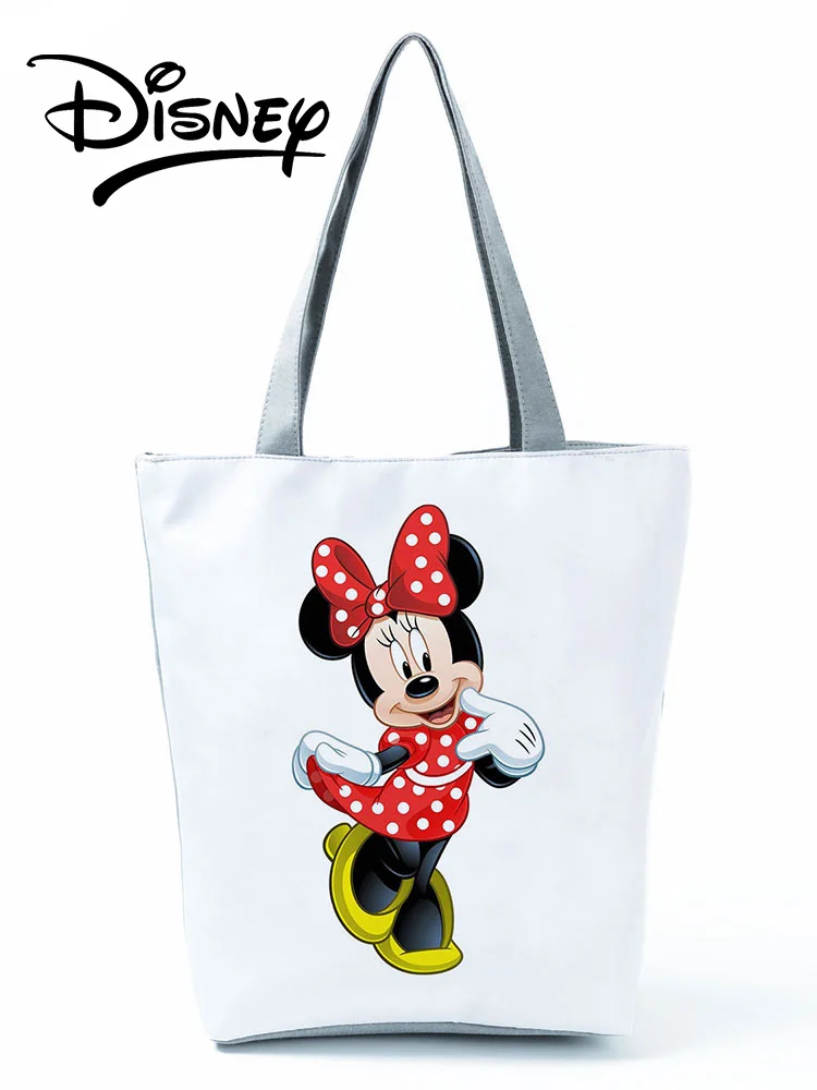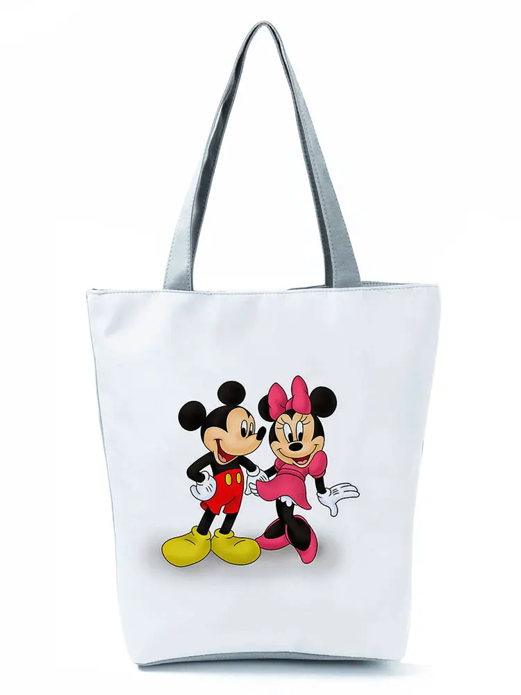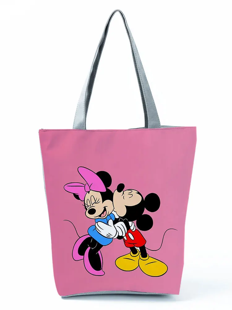 Сумка на плечо с принтом Минни и Микки Диснея, портативная вместительная мультяшная женская сумка для покупок, модная дорожная пляжная сумочка