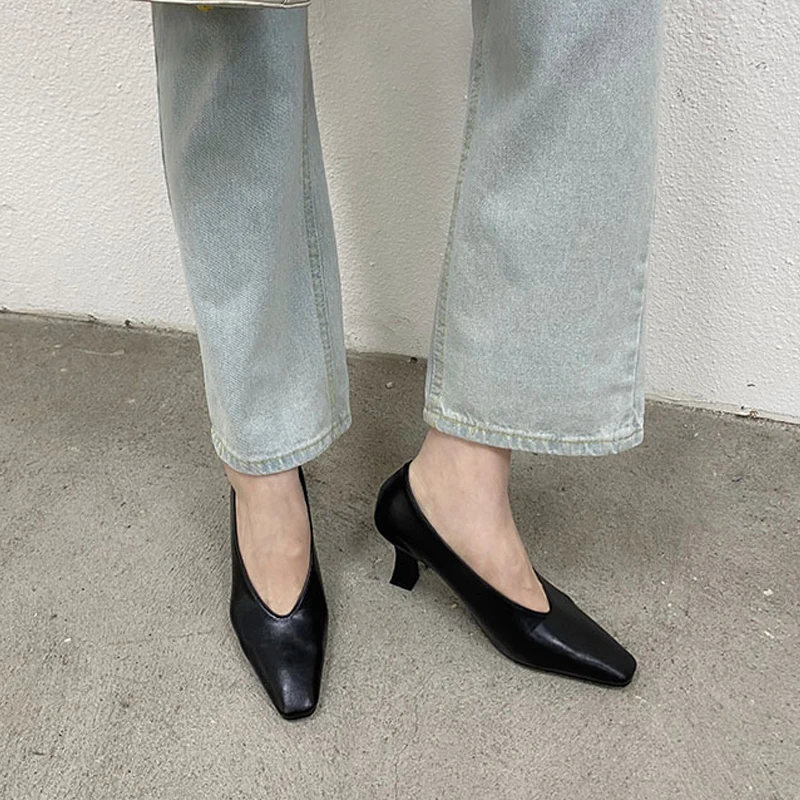 Весенняя Европейская модная обувь на плоской подошве с квадратным н...
