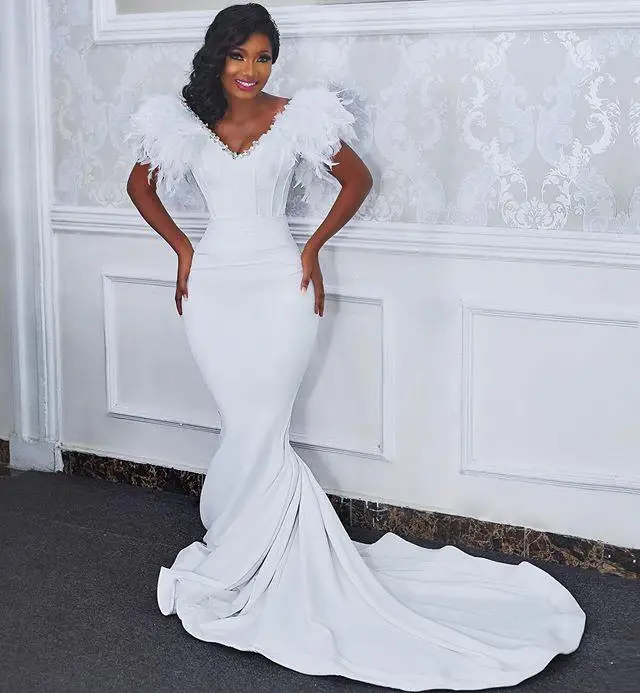 Женское атласное свадебное платье It's yiiya, белое платье с V-образным вырезом, расшитое бисером, в африканском стиле на лето 2021