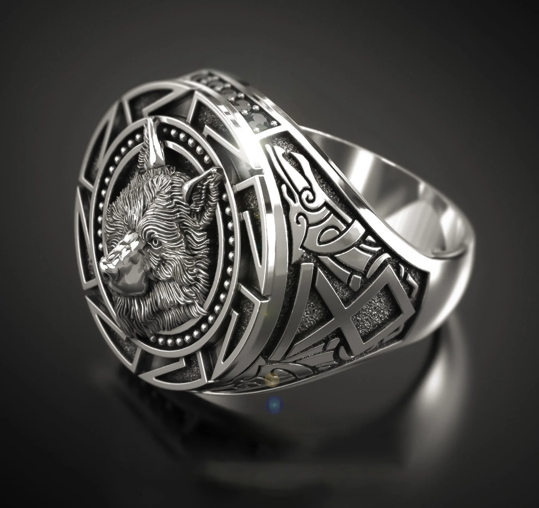 Мужское винтажное серебряное кольцо Тотем волка в скандинавской миф...