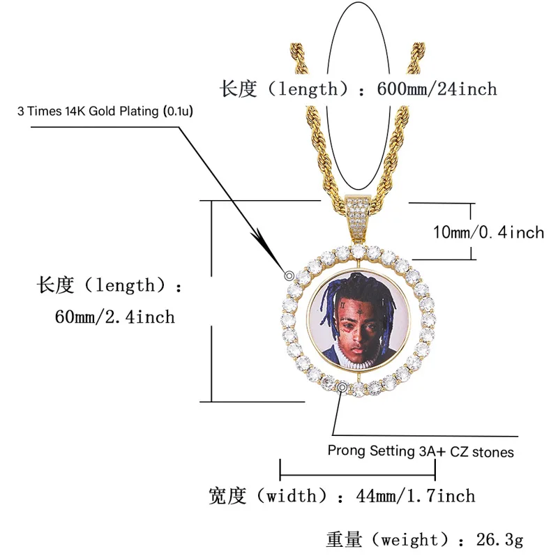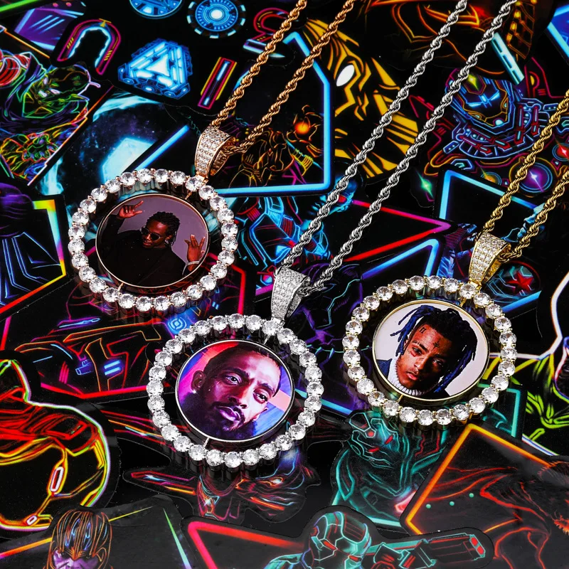 Ожерелья кулон фото на заказ креативные ожерелья кубический циркон вращающиеся круглые ожерелья двустороннее колье большой размер подарки ювелирные изделия