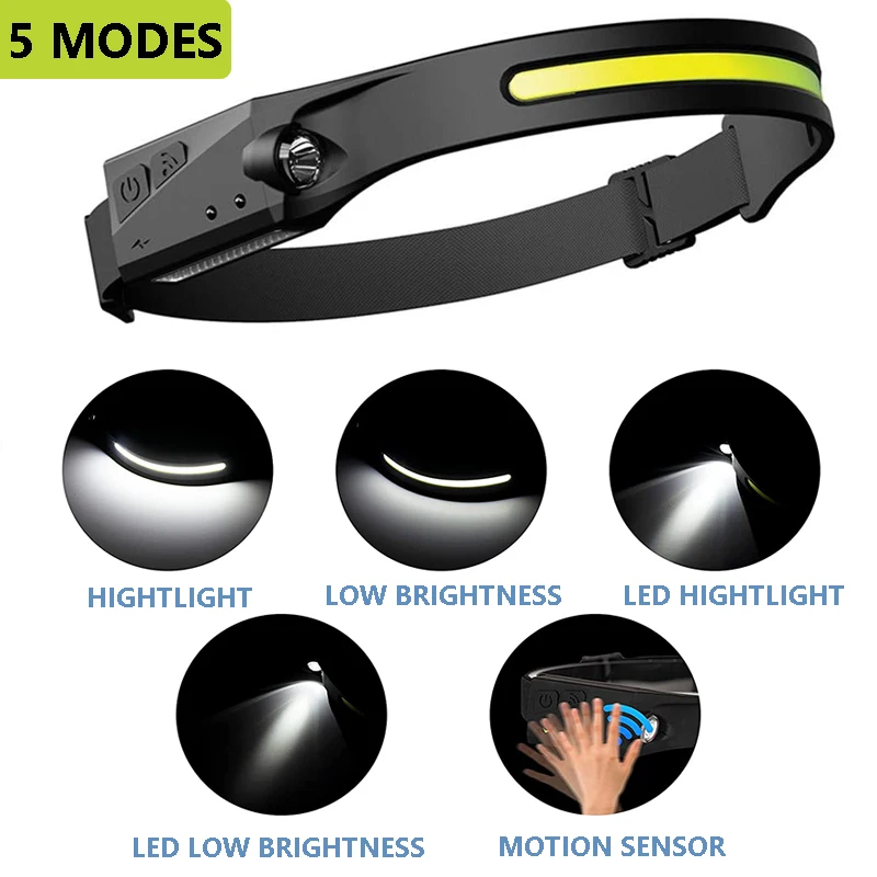 Налобный мини-фонарь с COB матрицей, 2400 мАч, зарядка через USB