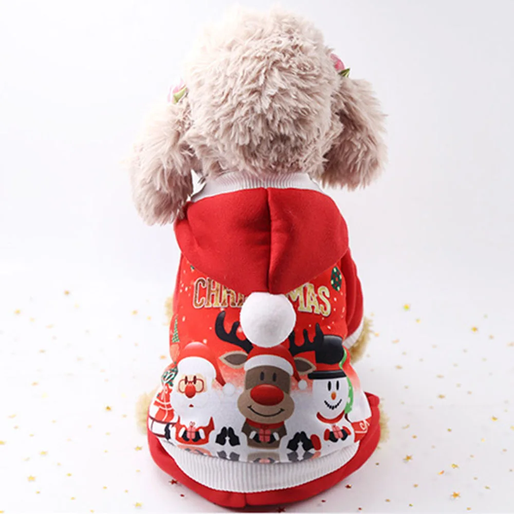 Милый Санта-костюм для собаки кошки Рождественские толстовки с капюшоном и пальто; Мягкая теплая одежда с рисунками оленей, хлопковая одежда для высокое качество щенка йоркширского терьера, пуделей, Мальты