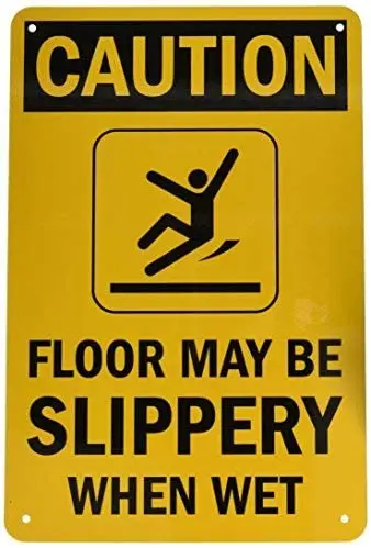 Оловянный знак безопасности, предостережение: пол может быть скользким при намокании, черный на желтом