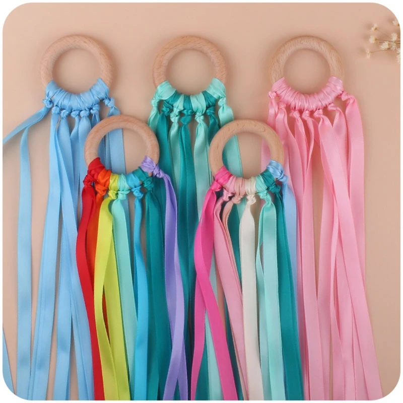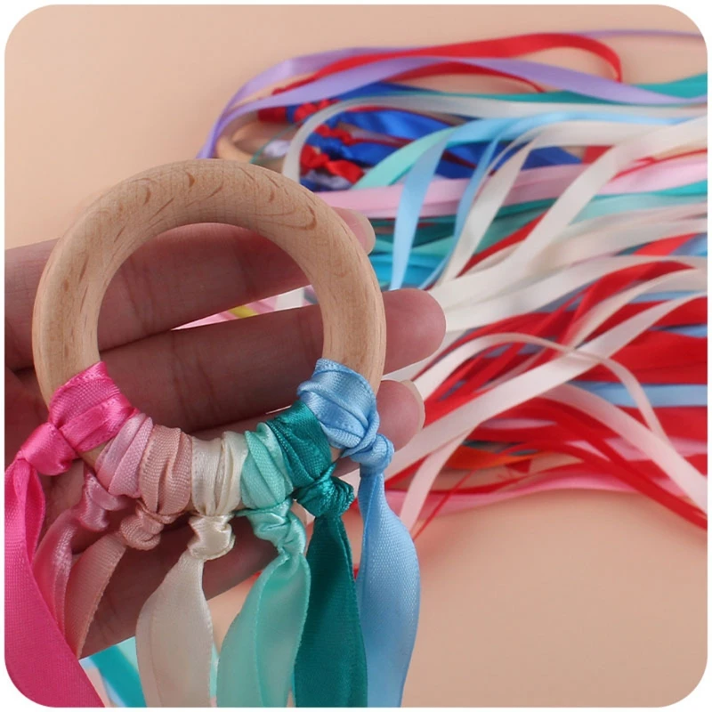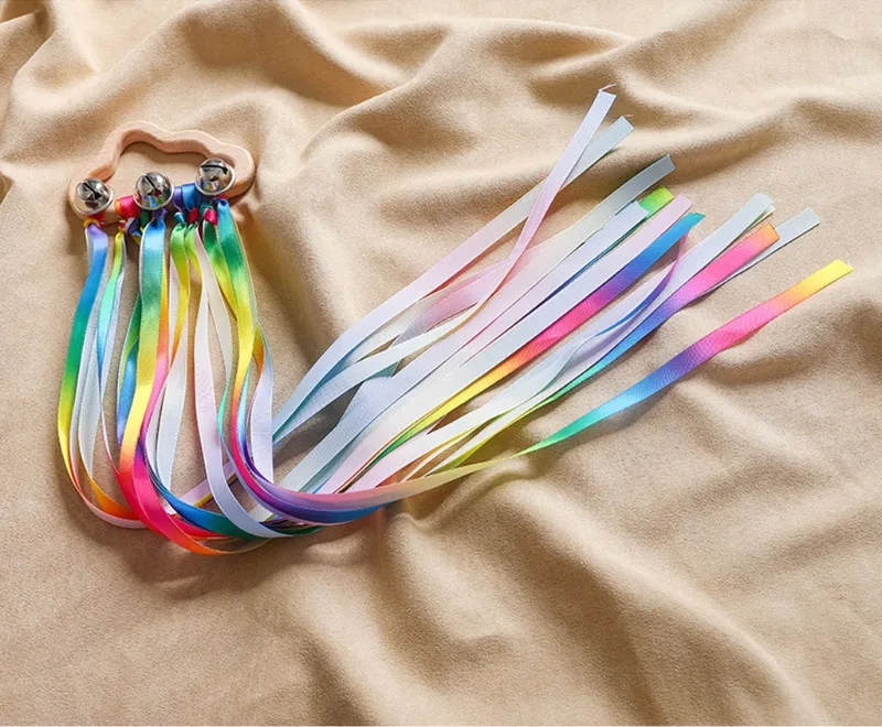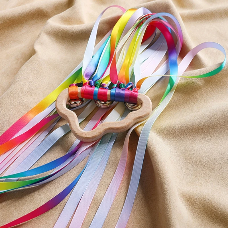 Детские сенсорные игрушки Монтессори, деревянное кольцо, радужная лента с колокольчиками, ручные колокольчики, для новорожденных, обучающая игрушка с распознаванием цвета