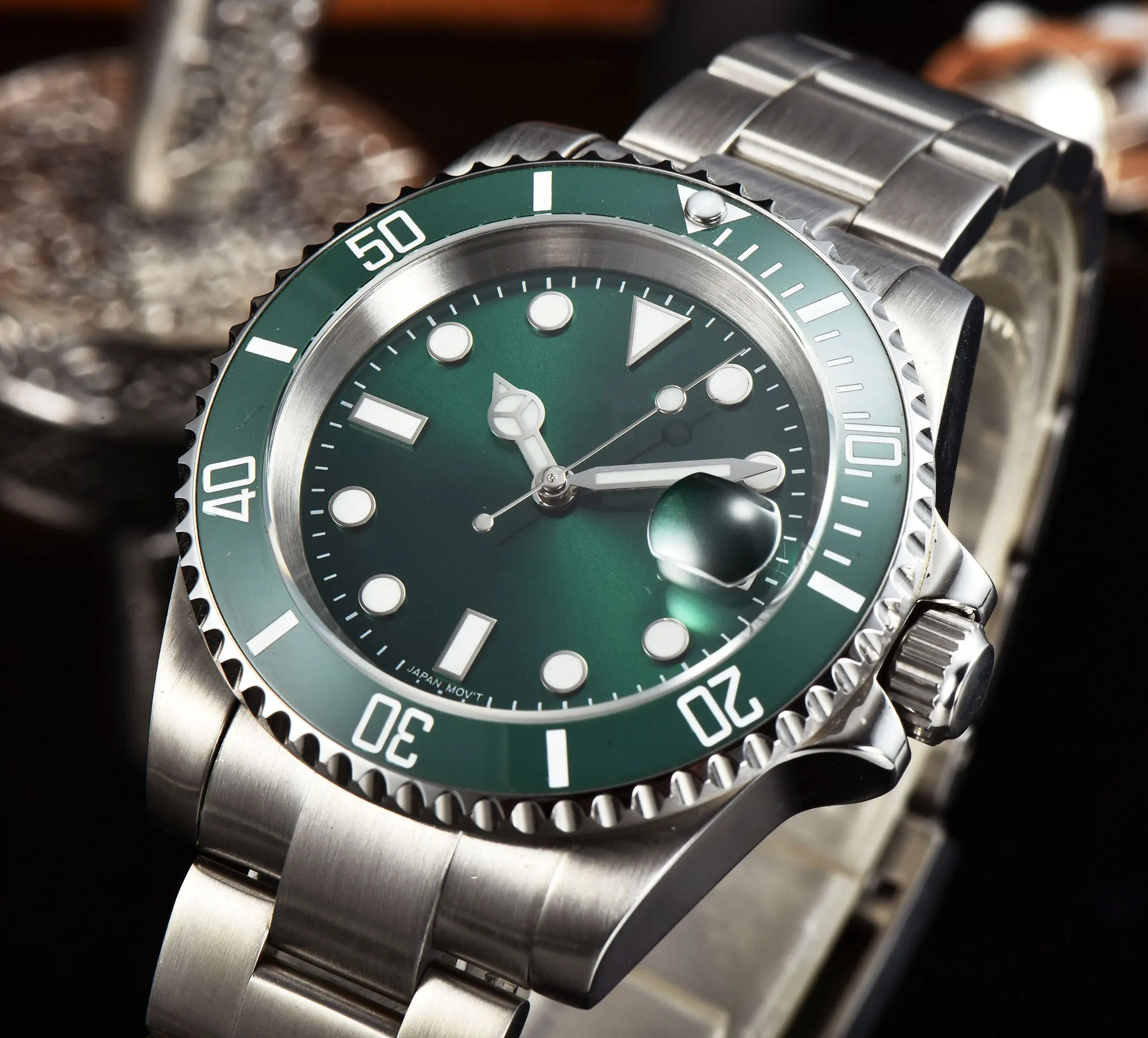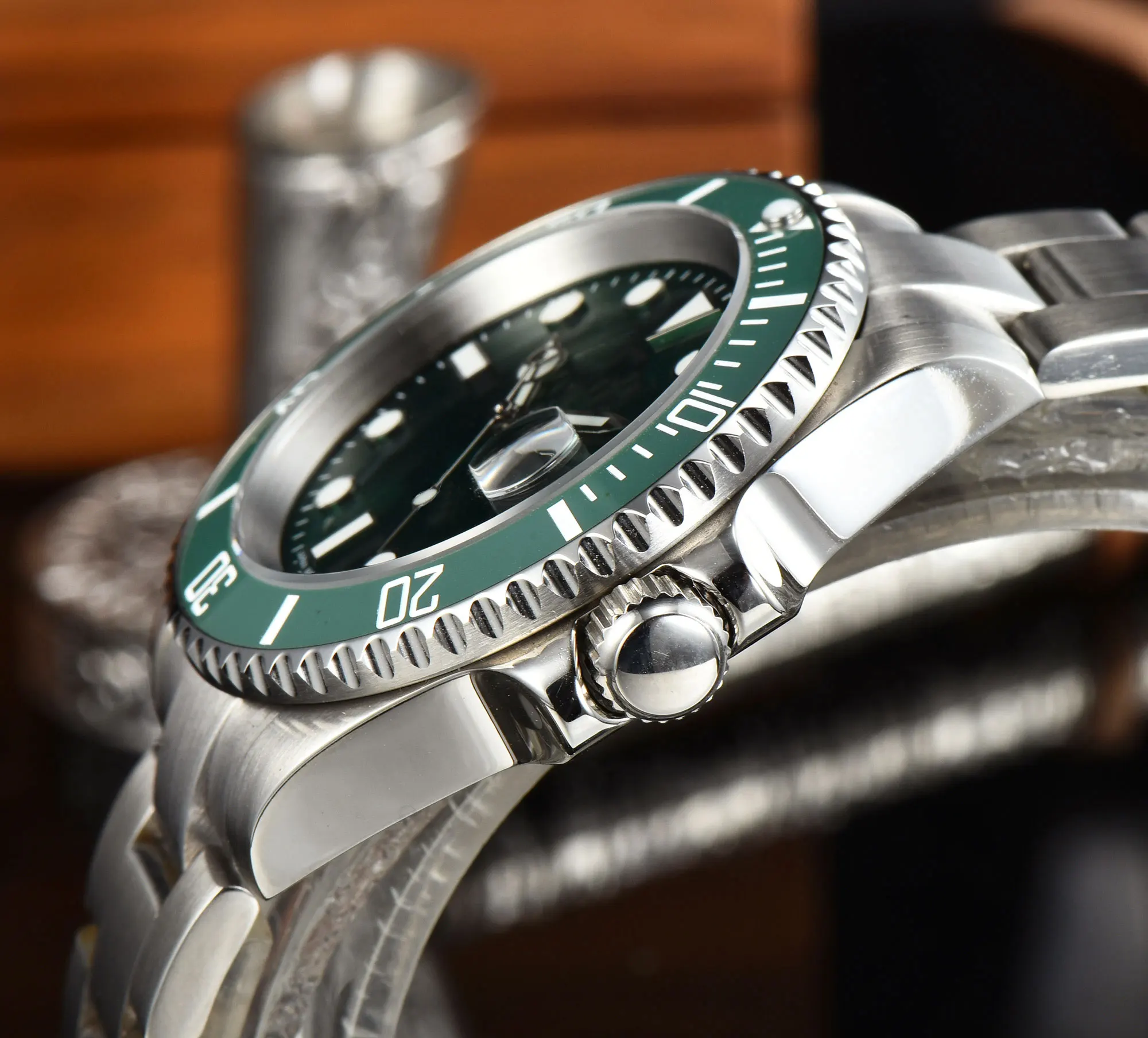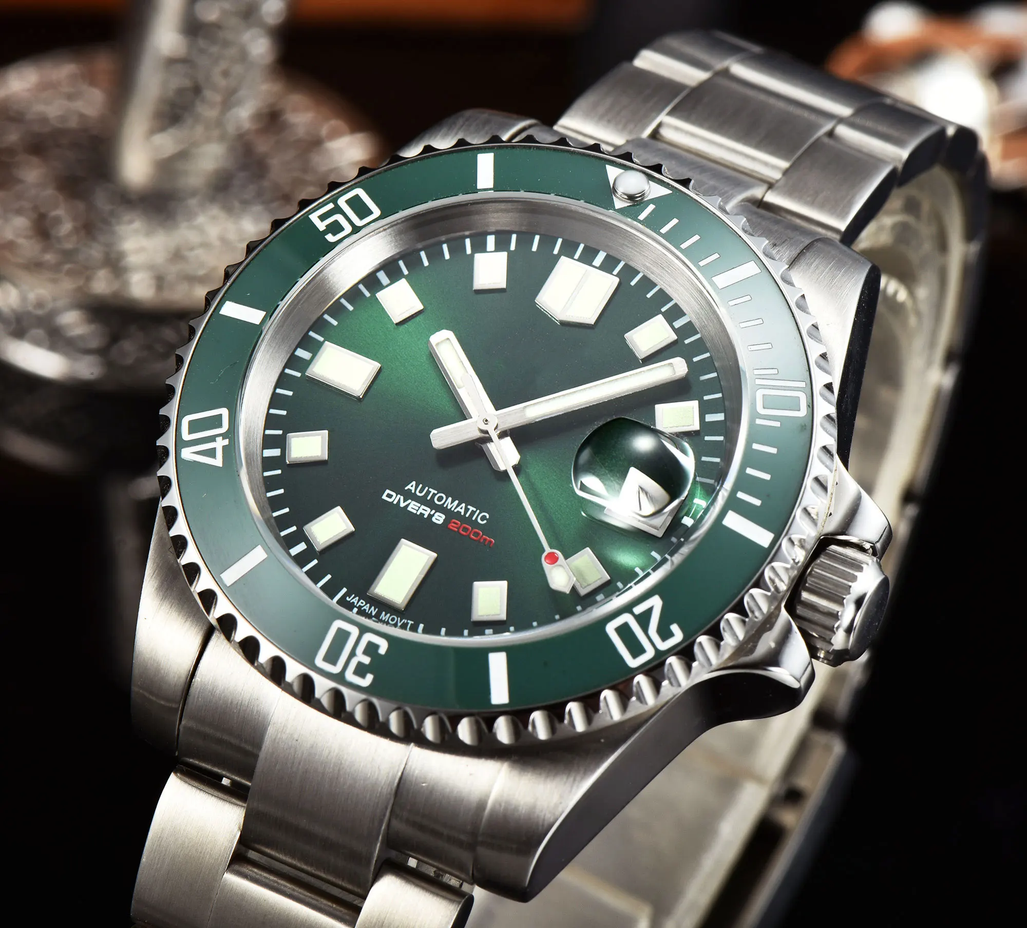 Мужские водонепроницаемые часы 200 м SUB Sunburst Green 24 Jewles NH35A, мужские часы с автоматическим перемещением, мужские часы с матовой устричной скользящей застежкой и керамической вставкой