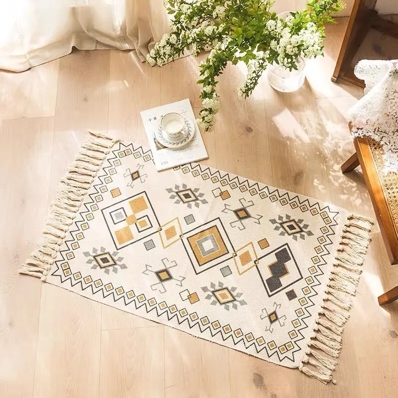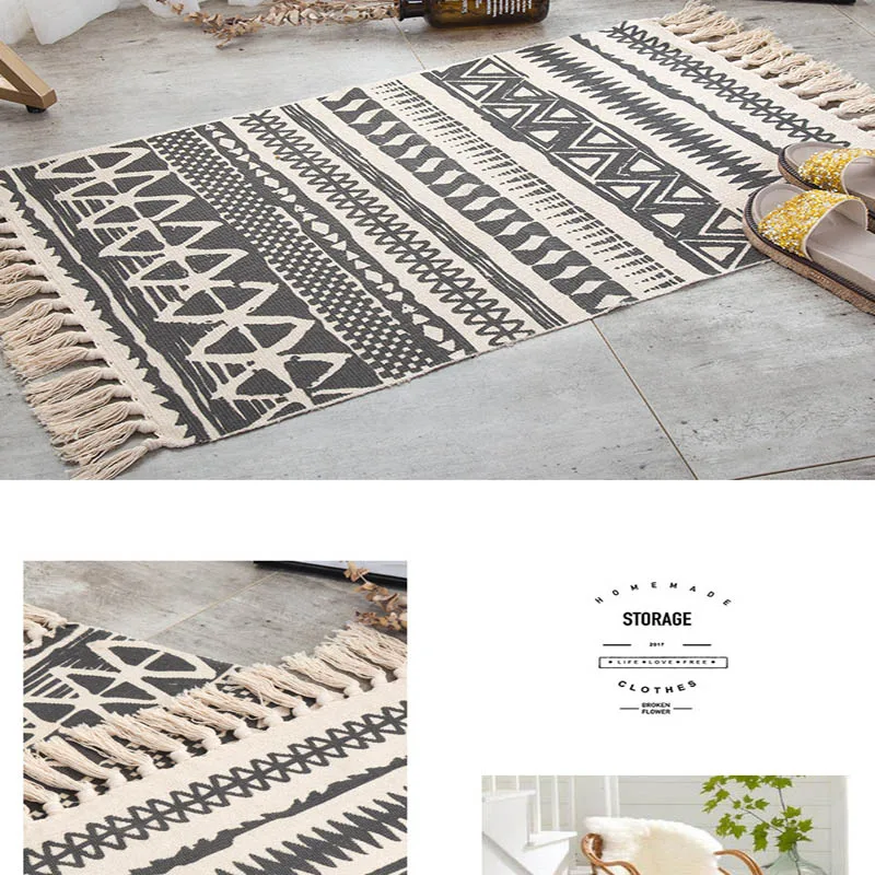 Коврик с кисточками, геометрический пол, Ретро стиль, богемный, ручная работа, хлопок, лен, ковер, гобелен для спальни, декоративное одеяло, коврик