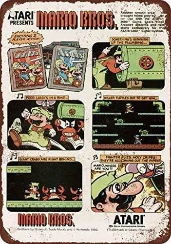 1984 Atari содержит Марио Брос. Репродукция в винтажном стиле, металлический жестяной знак 7x10 дюймов