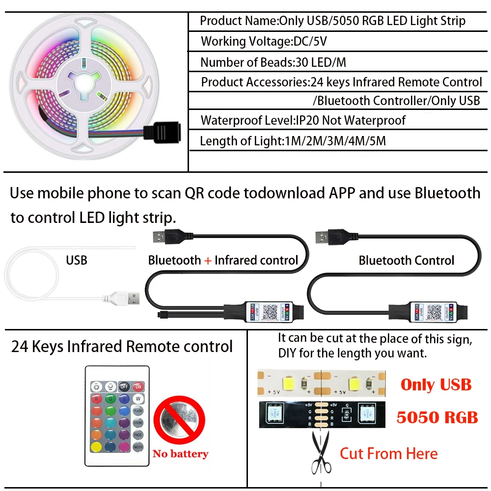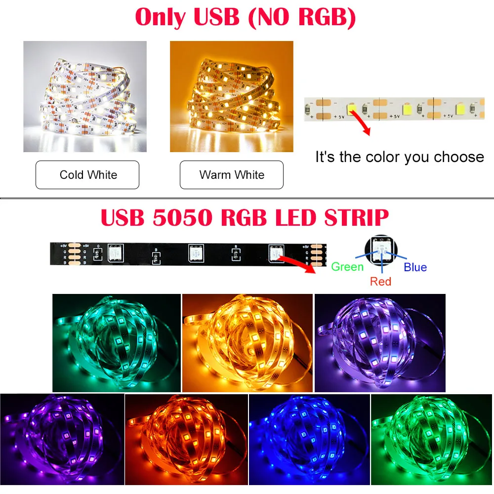 1. Только USB/RGB 5050 Светодиодный светильник (1 м/2 м/3 м/4 м/5 м).
