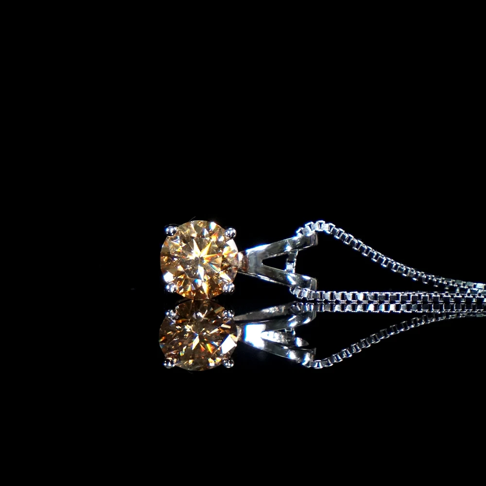 *** Примечание: длина цепочки 40 + 5 см, каждая партия шампанского moissanite будет иметь небольшую разницу в цвете. Поставляется с сертификатом GRA. 1ct Муассанит является 6,5 мм, 2ct Муассанит составляет 8 мм.