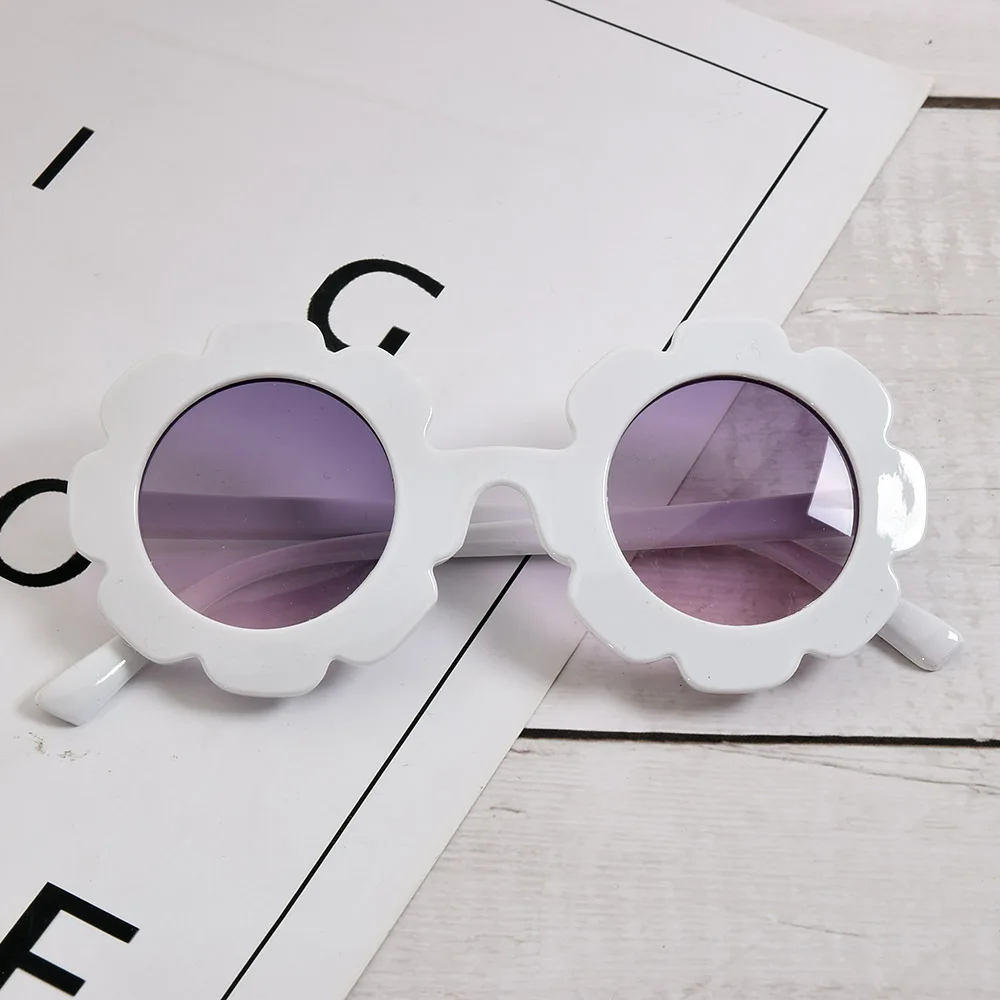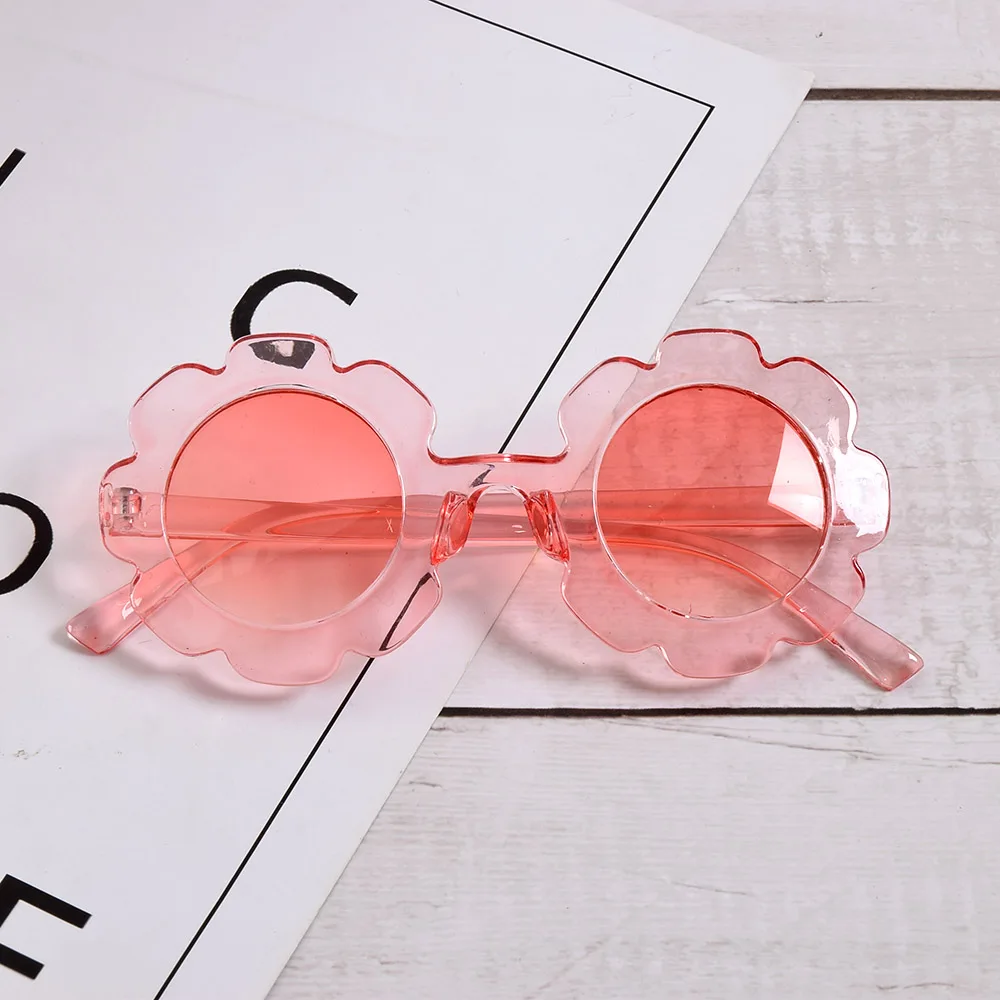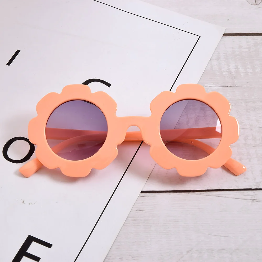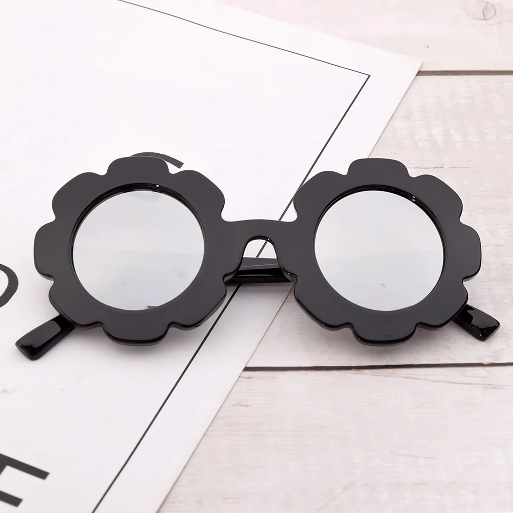 Детские солнцезащитные очки с цветами, милые яркие солнечные очки в круглой оправе для маленьких девочек, с лепестками цветов, велосипедные очки
