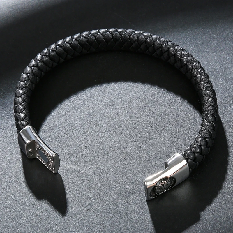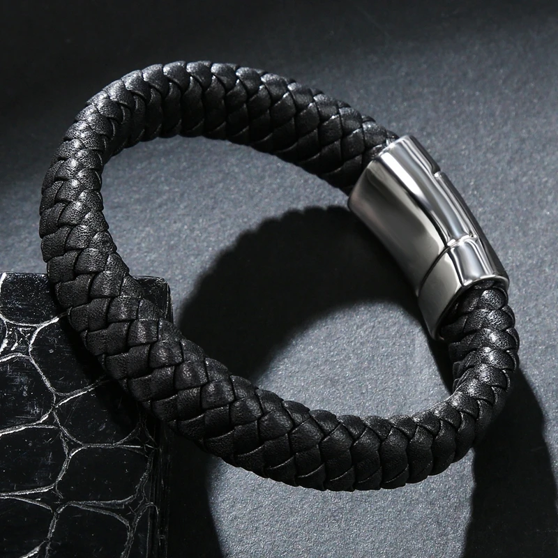 Браслет мужской кожаный плетеный, из нержавеющей стали, магнитный, ...