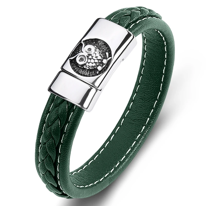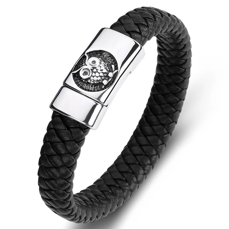 Мужской кожаный браслет в стиле панк-рок, из нержавеющей стали