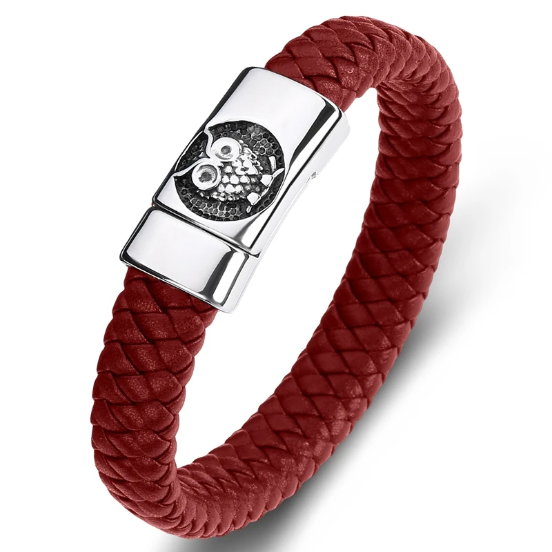 Плетеный кожаный браслет, черный, красный, мужской, панк, ювелирные...