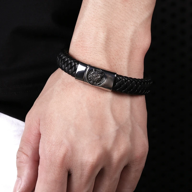 Новый дизайн, мужской кожаный браслет с черепом из нержавеющей стал...
