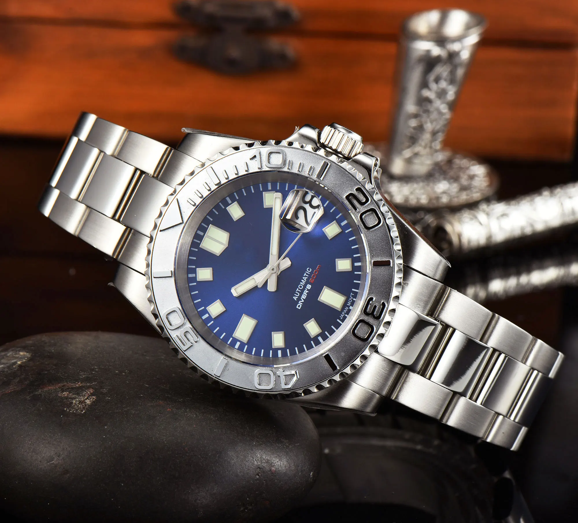 Мужские часы Diver 24 Jewel NH35A 40 мм авто синий циферблат Серый матовая вставка полированный браслет Устрица светящиеся следы Скользящий замок