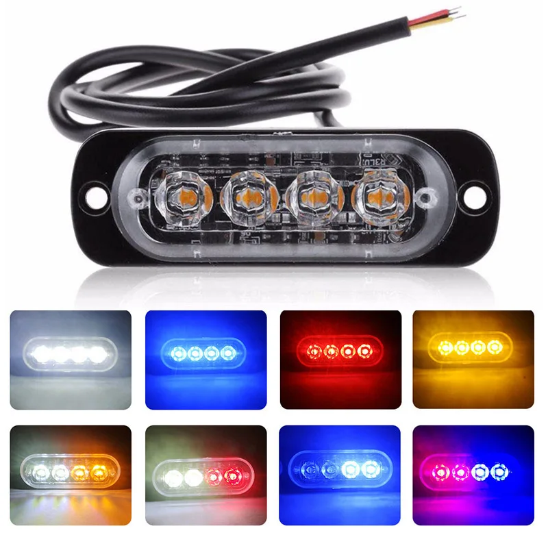 1 шт. 4 мигающий светодиод Предупреждение светильник Strobe решетка огни мигающий светильник бар для грузовиков автомобильный проблесковый маячок Amber красные, синие белые трафика флэш-светильник