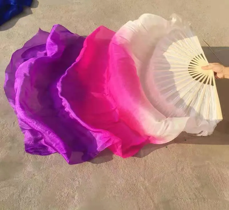 Веер-вуаль из натурального шелка для танца живота, градиентный, горизонтальный, окрашенный, танцевальная одежда для девушек