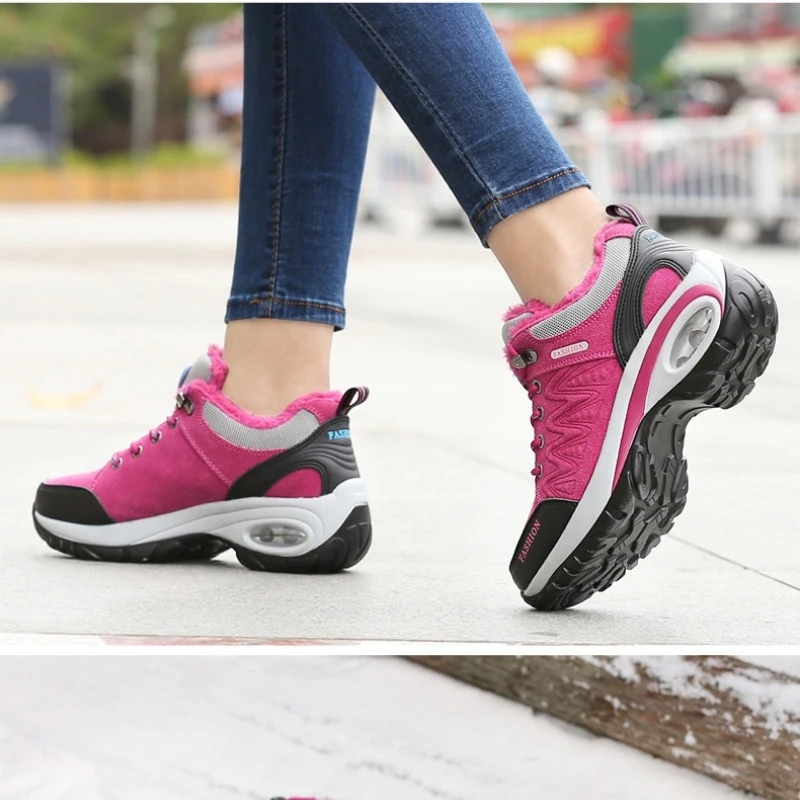 Кроссовки женские плюшевые, модная повседневная теплая нескользящая обувь для активного отдыха, Зимние сникерсы для путешествий, спортивная водонепроницаемая износостойкая обувь для скалолазания