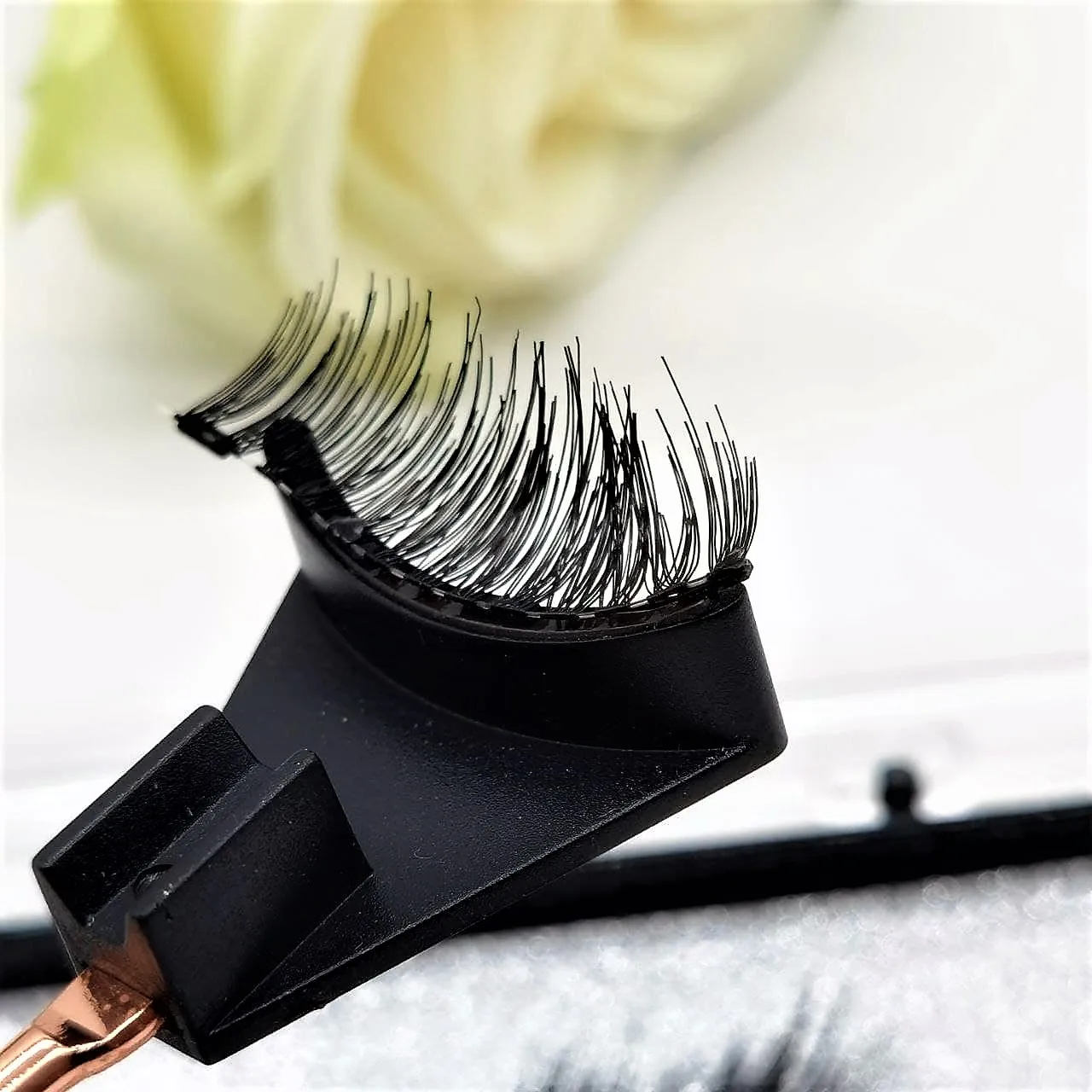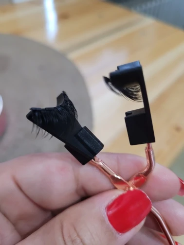 Очень сложно собрать его вместе. Пробовал много раз, но никогда не сможет приклеить его правильно как одну прямую. Слишком сильный магнит вытягивает оригинальные ресницы.