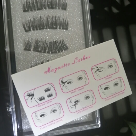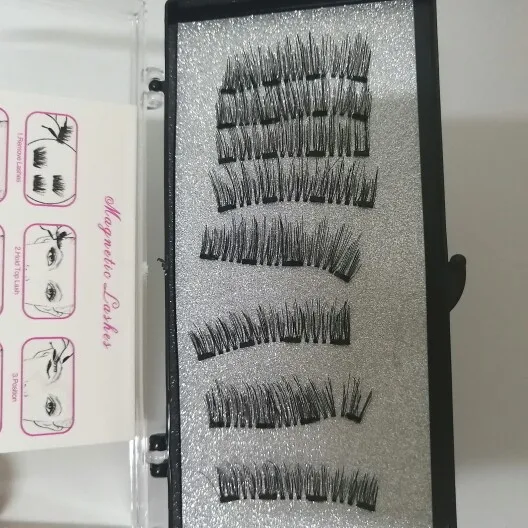Реснички красивые. Упаковка хорошая. Если у вас имеется опыт их установления, то покупайте их без сомнения. Магниты хорошие держатся хорошо на ресницах.