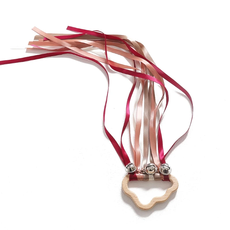 Деревянная погремушка Монтессори с радужной лентой, ручной воздушны...