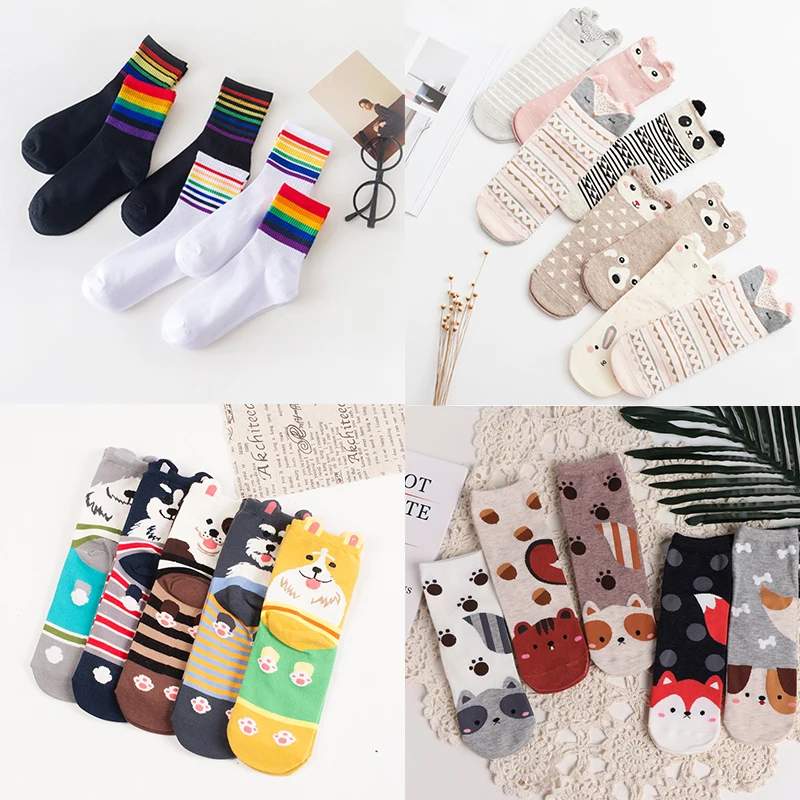1 пара очаровательных женских носков с героями мультфильмов, Модные дышащие хлопковые носки с животными, высокое качество, Осень-зима, забавные носки, Calcetines Mujer