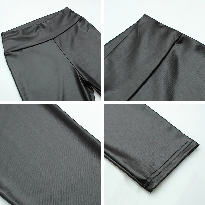Леггинсы женские из искусственной кожи, с высокой талией, черные