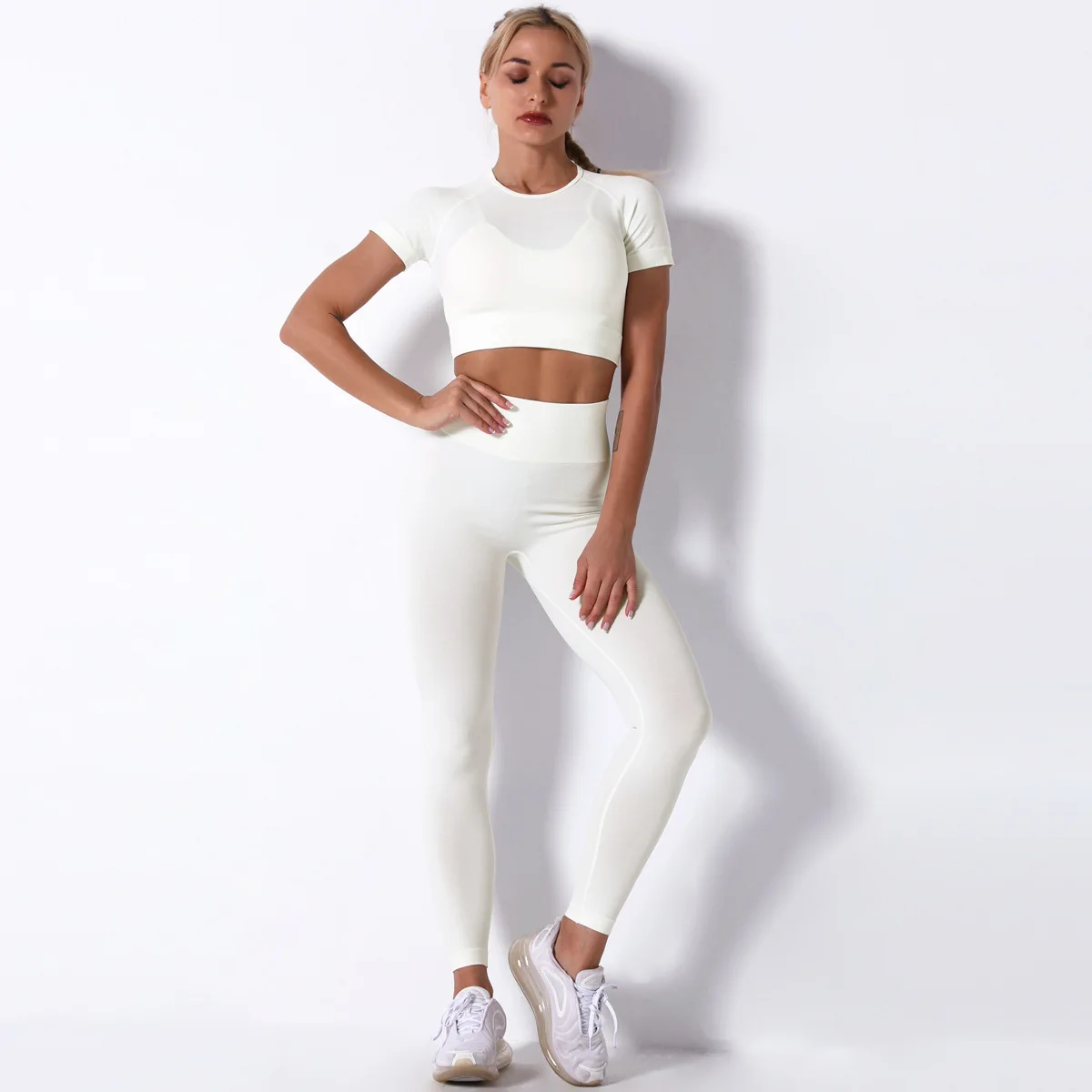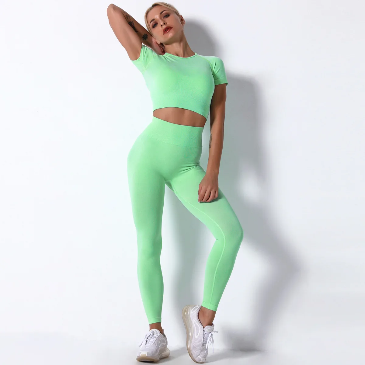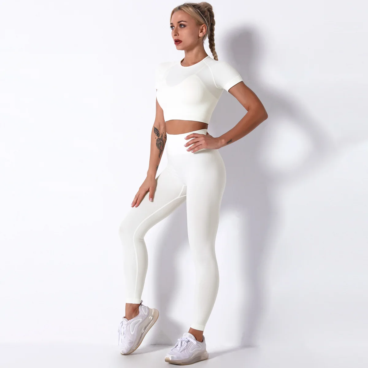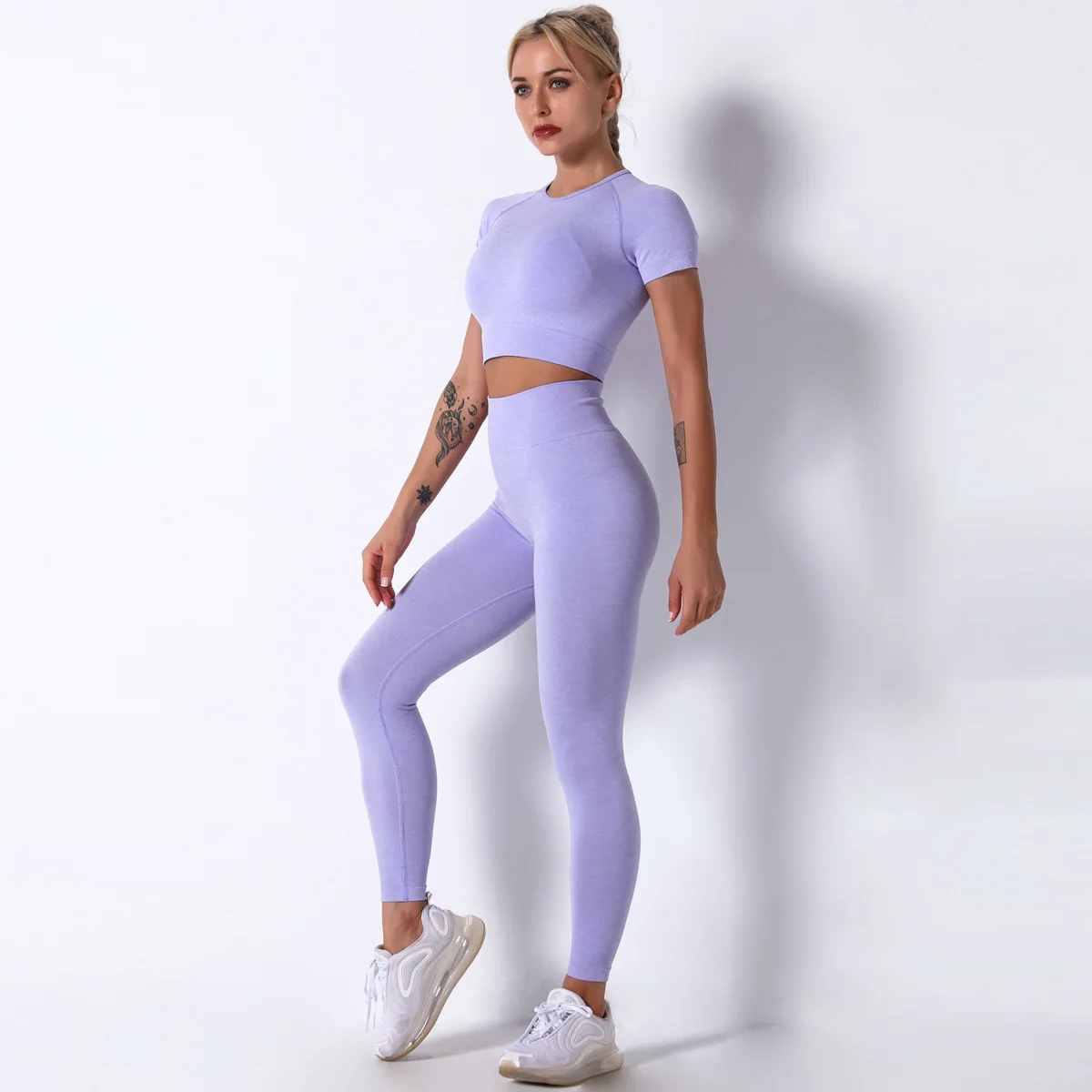 Комплект спортивной одежды из двух предметов, женские трико, футболки с коротким рукавом, бесшовная одежда, женский тренировочный костюм для фитнеса, одежда для йоги