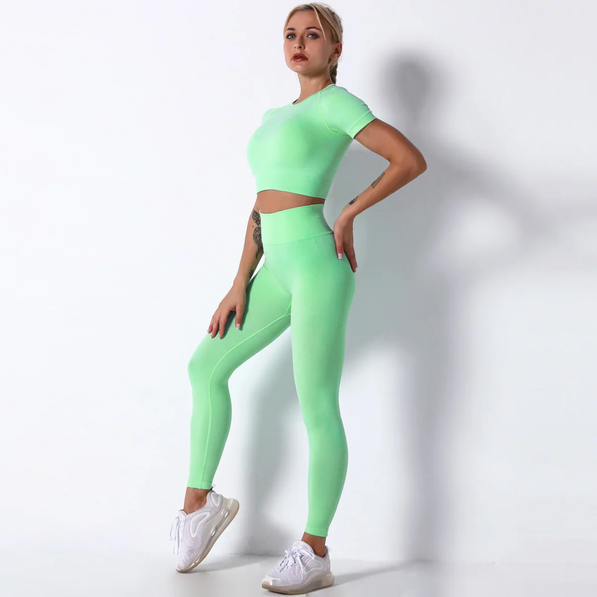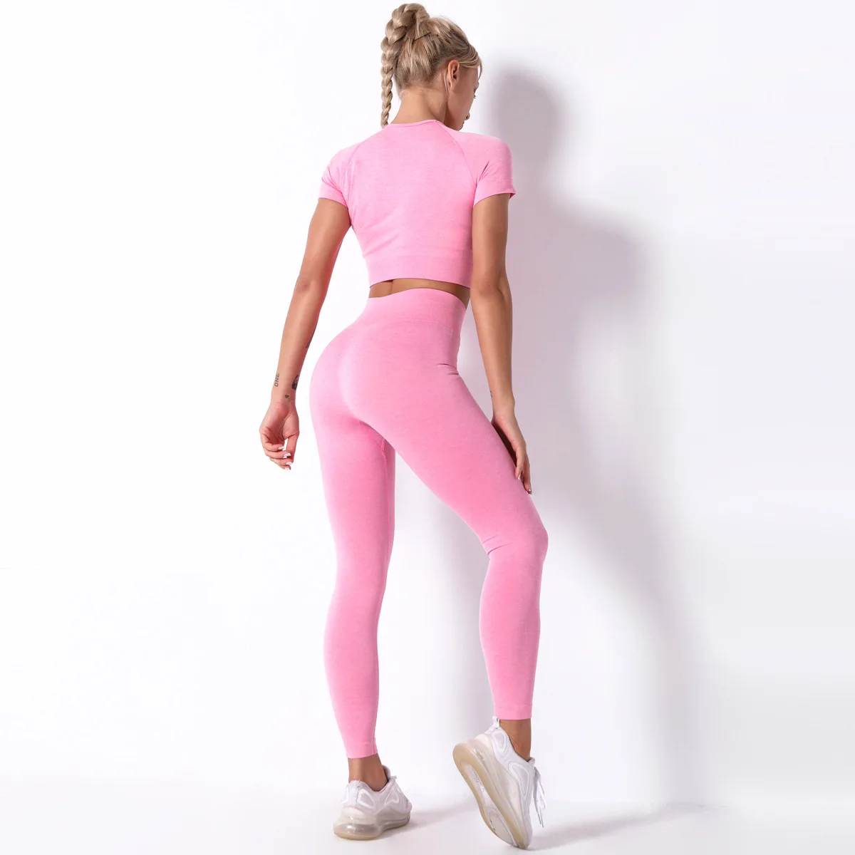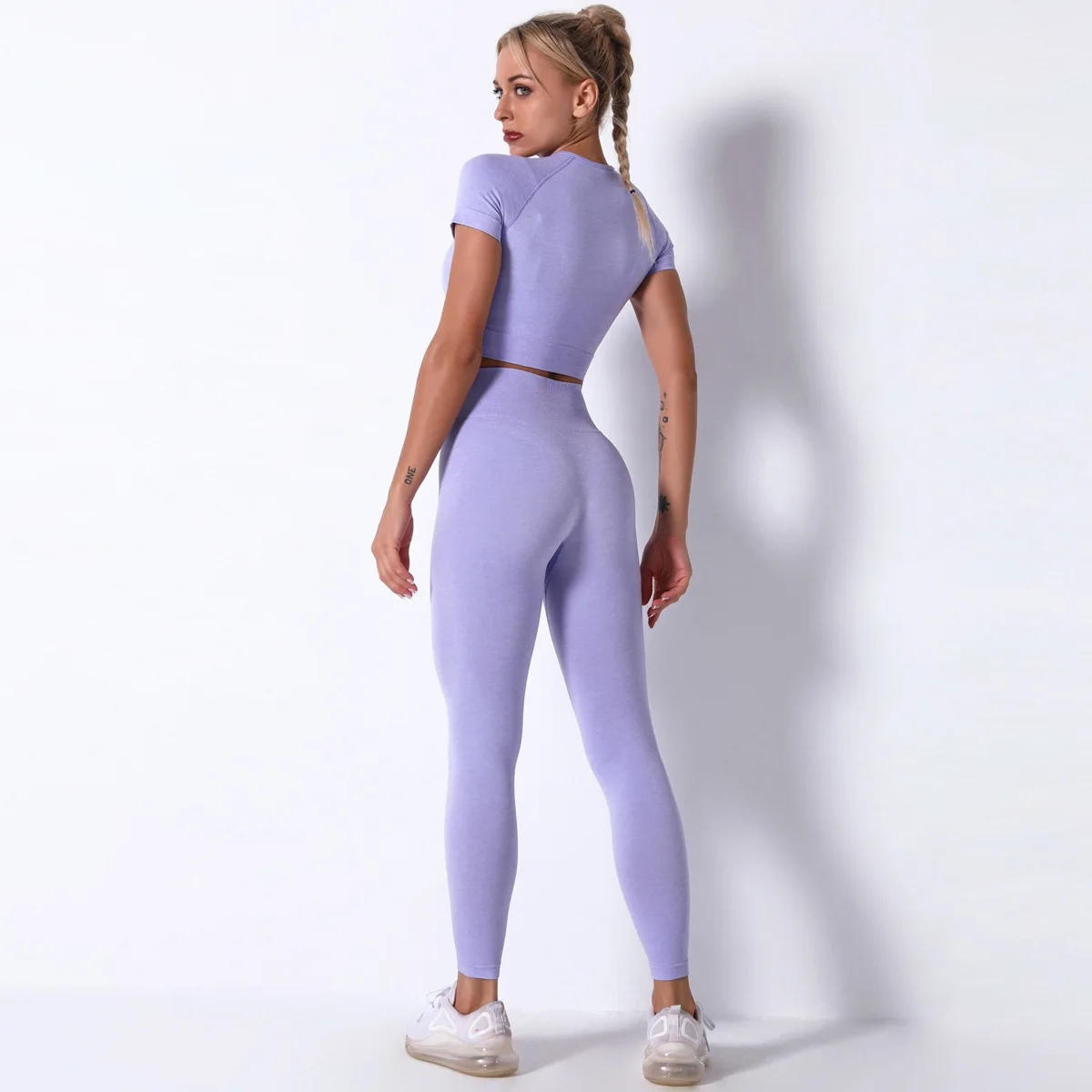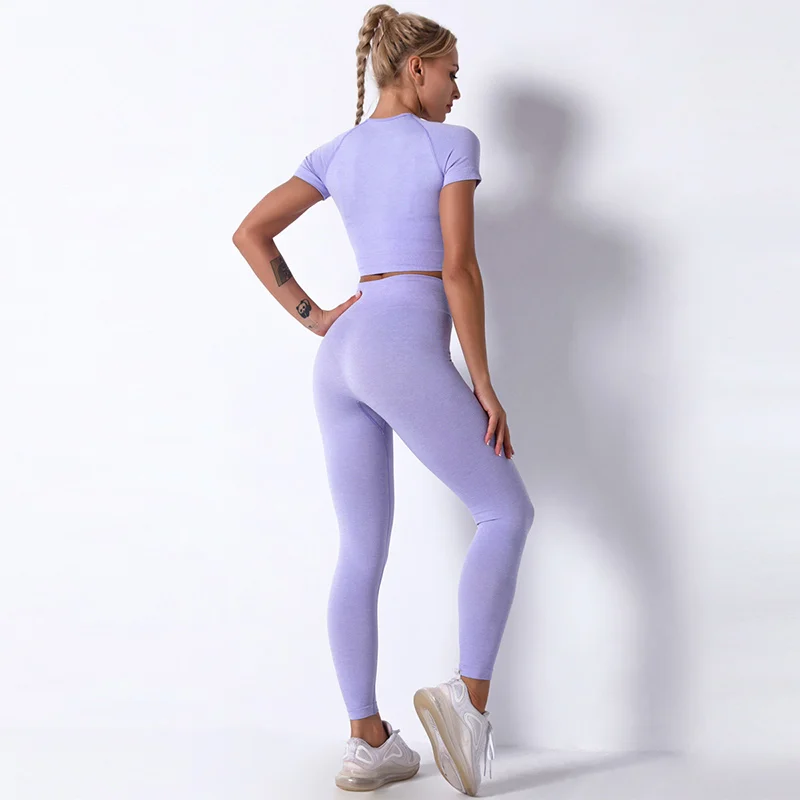 Комплект спортивной одежды из двух предметов, женские трико, футболки с коротким рукавом, бесшовная одежда, женский тренировочный костюм для фитнеса, одежда для йоги