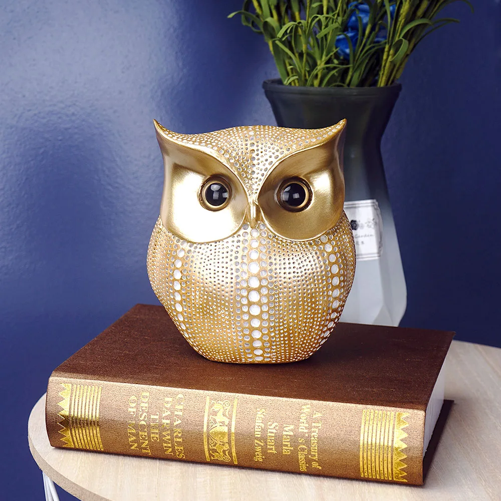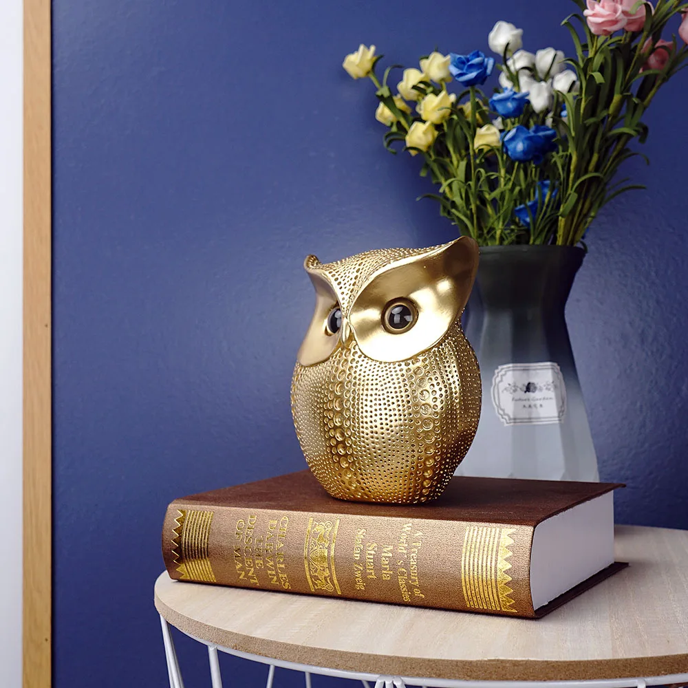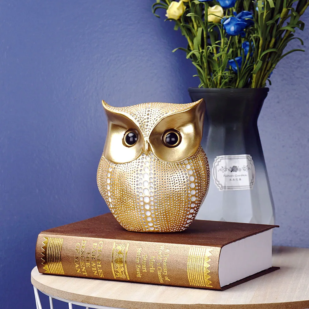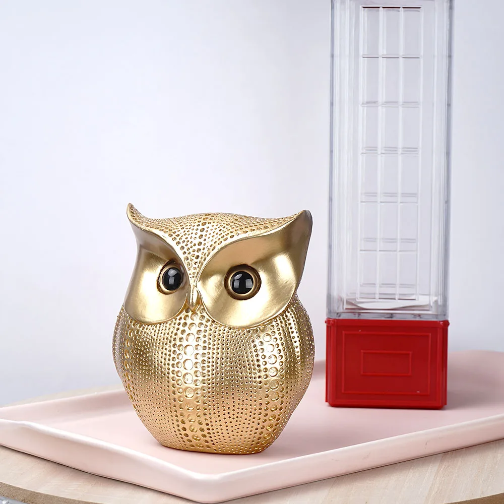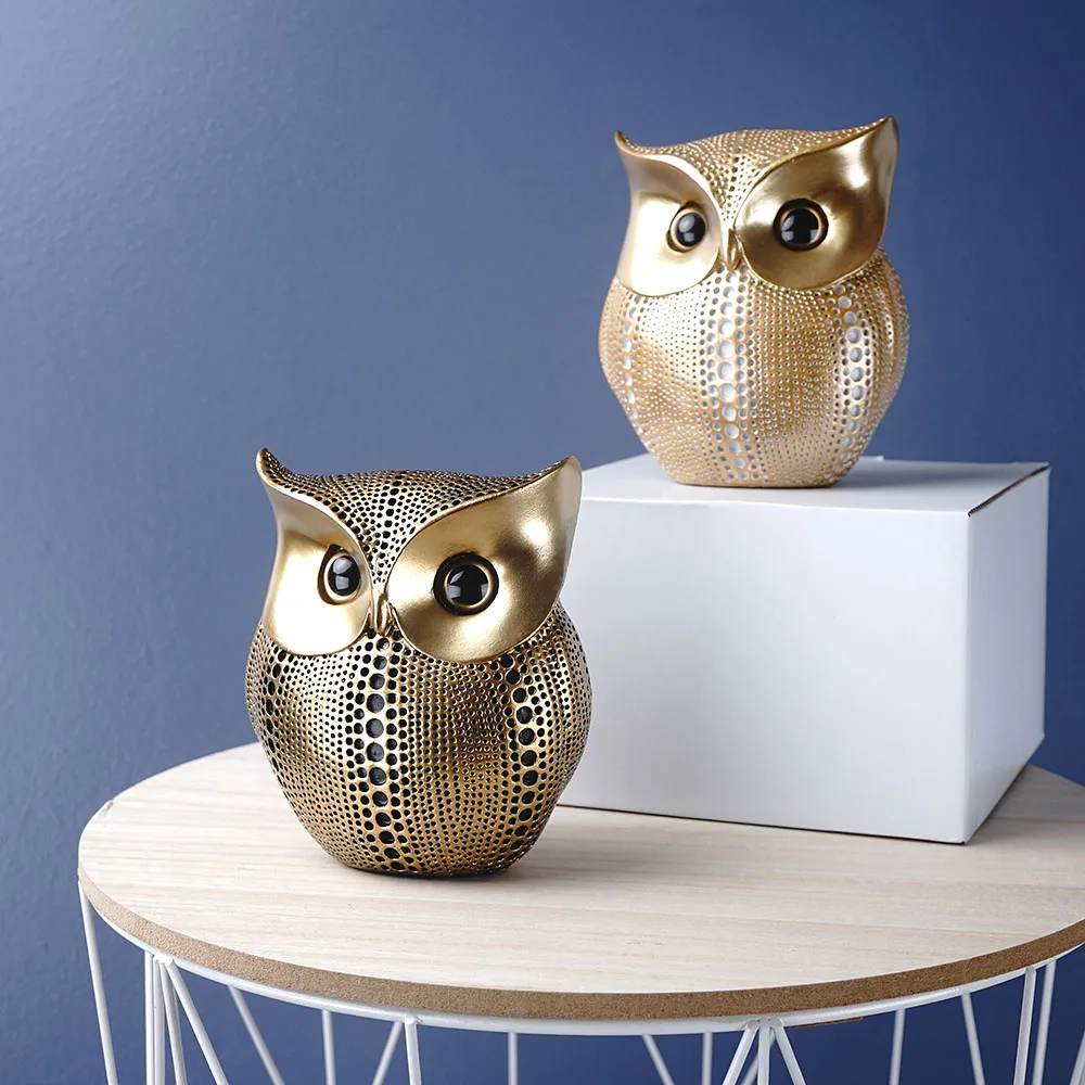 Современные статуэтки в виде Золотой совы, украшение для дома, полимерная статуэтка в виде совы с птицами, настольное украшение для комнаты, офиса, декор для сада