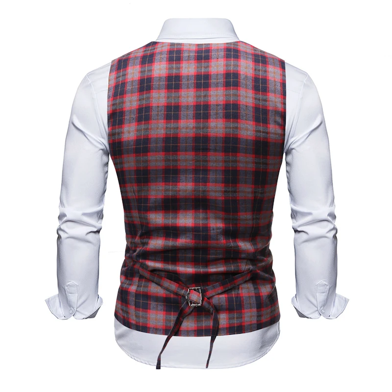 Жилет мужской, в клетку, однобортный, приталенный, деловой, Свадебн...