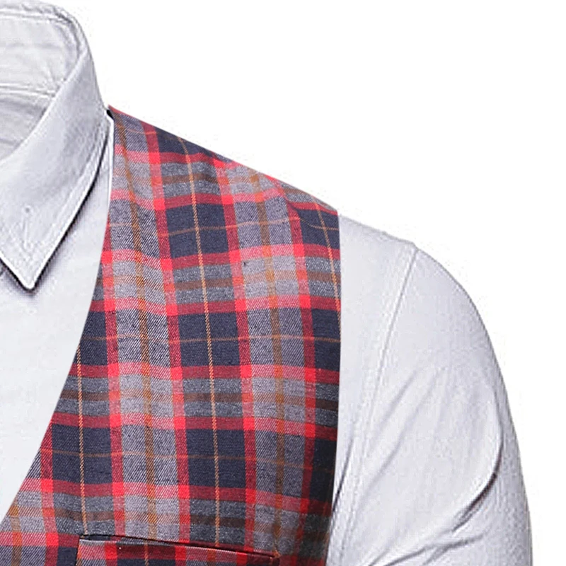 Жилет мужской классический, приталенный клетчатый костюмный, безрукавка, повседневный деловой пиджак без рукавов, 3XL