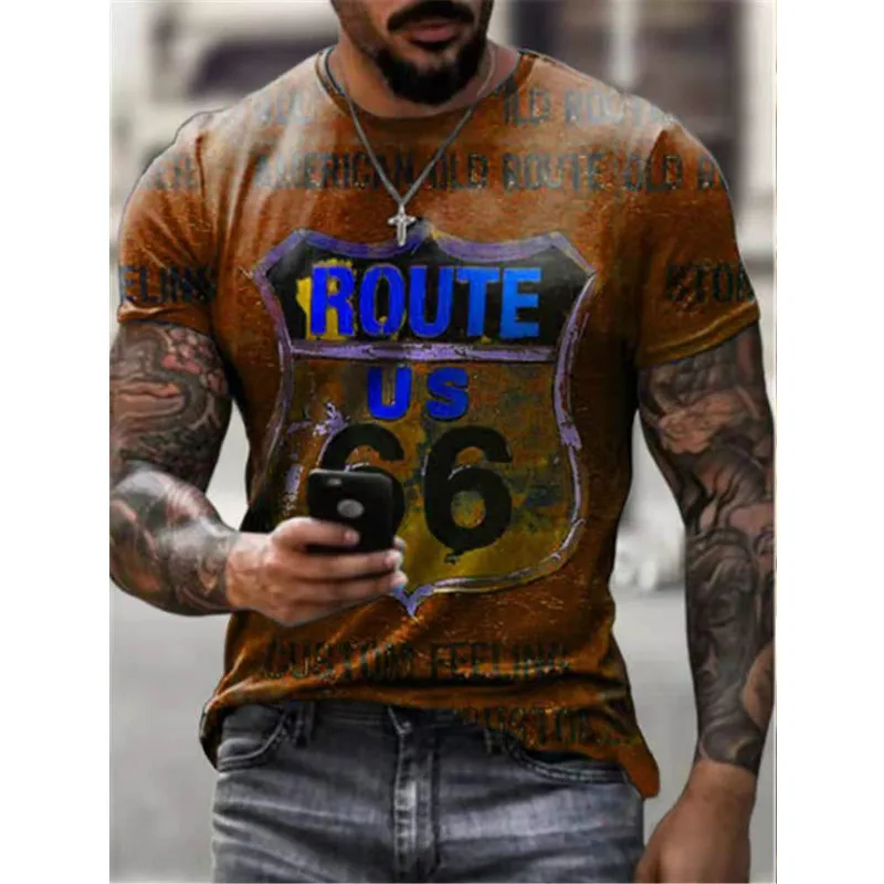 Дорога 66 американский дорожная Мужская футболка с коротким футболки с рукавами, с круглым вырезом, хлопковая футболка с коротким рукавом, одежда повседневная с буквенным принтом Футболка негабаритных 2021 Лидер продаж