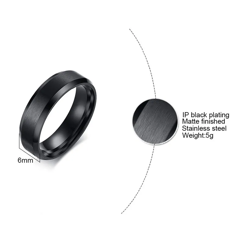 Классическое матовое черное серебряное кольцо из нержавеющей стали для мужчин и женщин, ширина 6 мм, обещание, свадебные украшения, подарки
