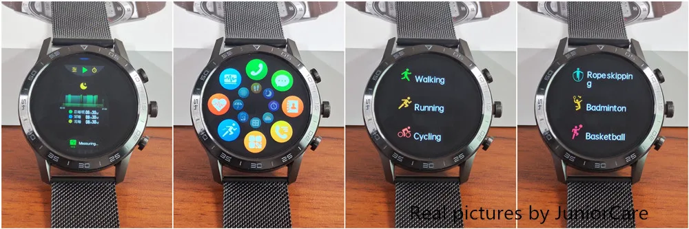 Характеристика:Поворотная пуговицаПерсонализированные часы facePPG + ECGТренировка дыханияНажимной циферблатСекундомерКонтроль яркостиМультиспортивный режимМонитор снаПульсУдаленная музыкаПогодаНайти телефон (Доступно после подключения телефона)Телефонный звонок (позвоните/ответьте на звонок)Воспроизведение музыки по BluetoothЗащита паролемПоднимите руку, чтобы осветить экранКалькуляторСплит-экранЯрлык с расширениямиПогодаМассажерУпаковочный лист: