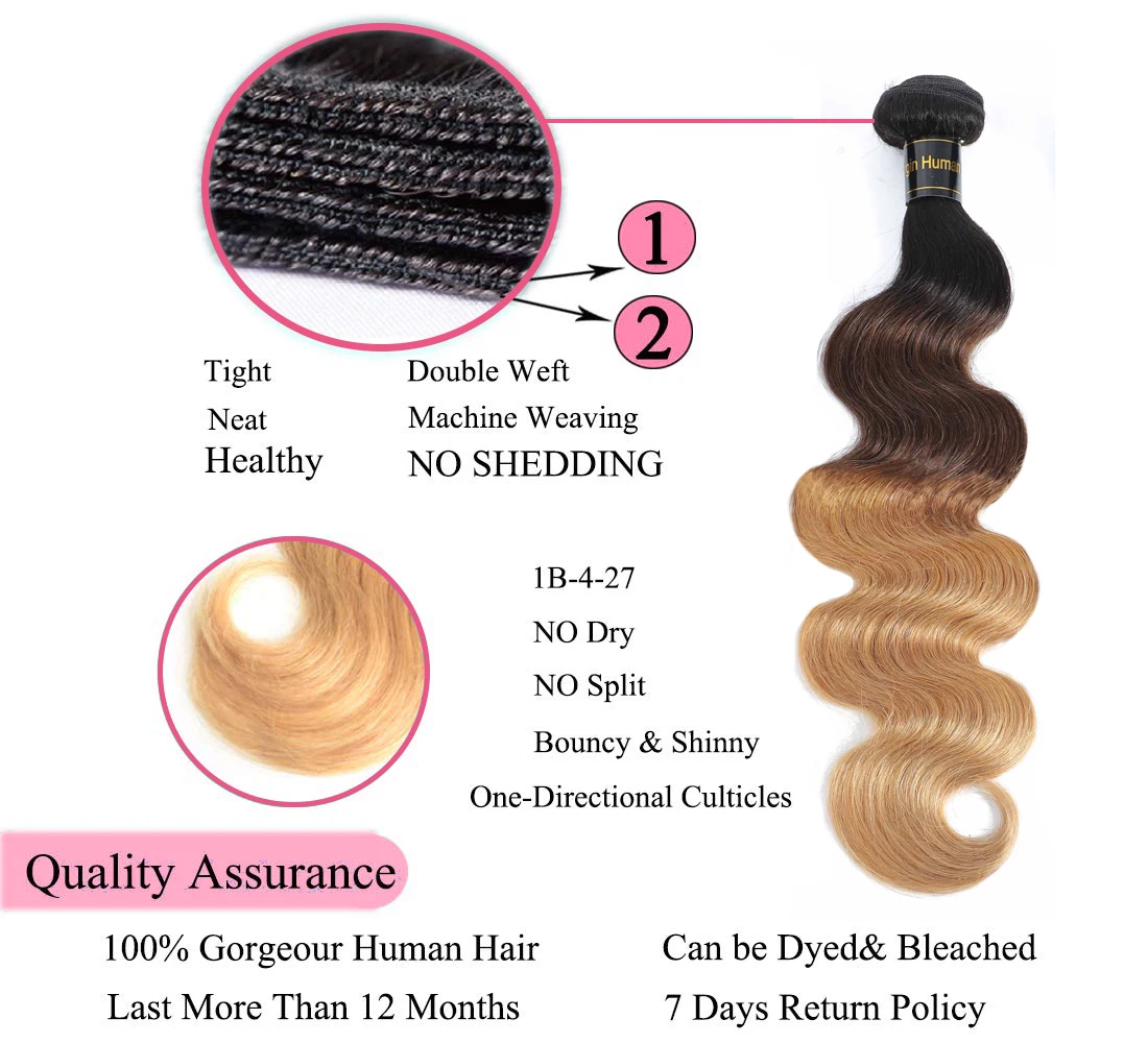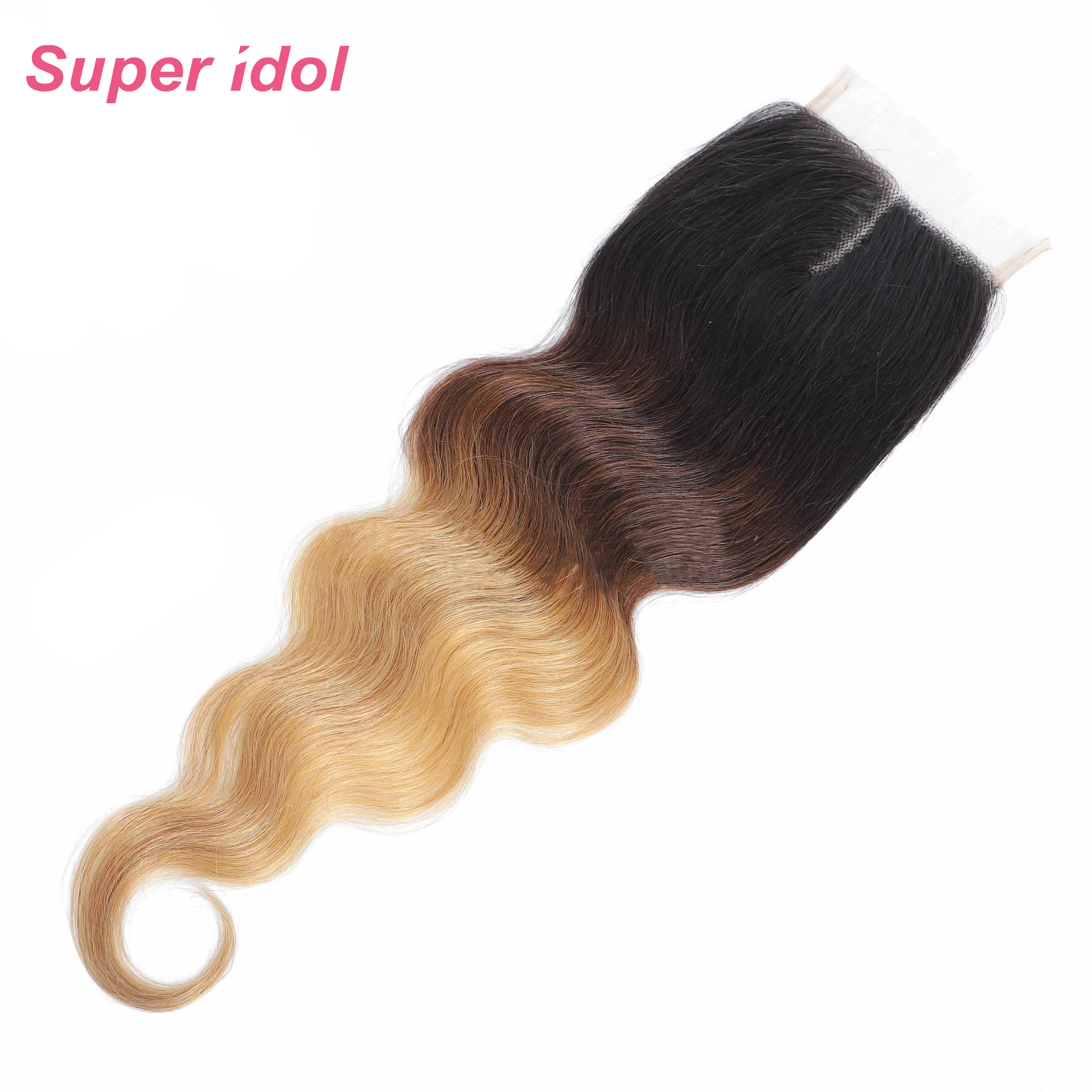 Пучков омбре с застежкой бразильские волнистые человеческие волосы пучки с T-образной застежкой 1B427 волнистые волосы для наращивания