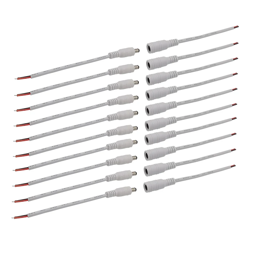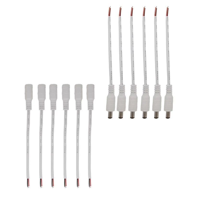 5 шт.5 пар белых 5,5x2,1 мм 12 В постоянного тока штекер гнездовой разъем провода Кабельный разъем 5,5*2,1 мм кабель питания постоянного тока Pigtail