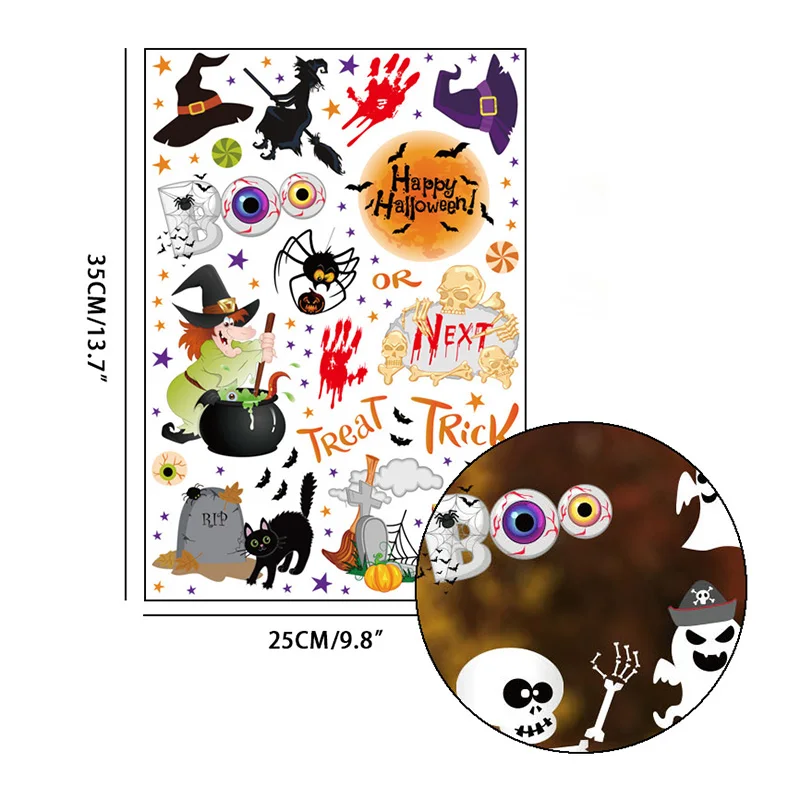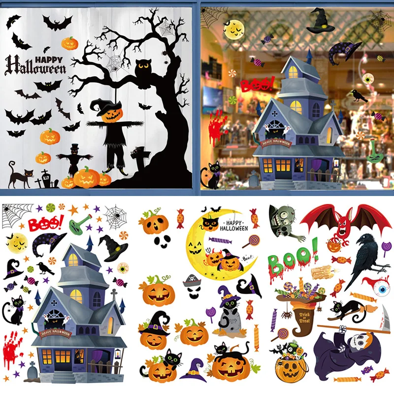 Товары для вечерние эллоуина 2021, наклейки на окна, череп, скелет, настенные наклейки, дом с привидениями, ужас, украшение на Хэллоуин для дома