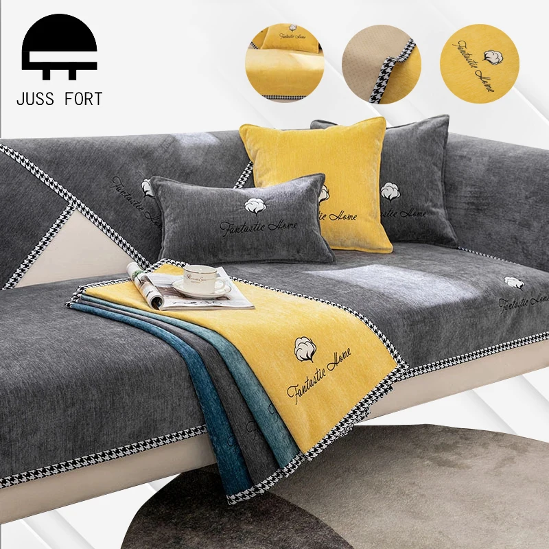 Подушка для дивана из синели, нескользящее покрытие синего, зеленого, желтого, серого цветов, для гостиной