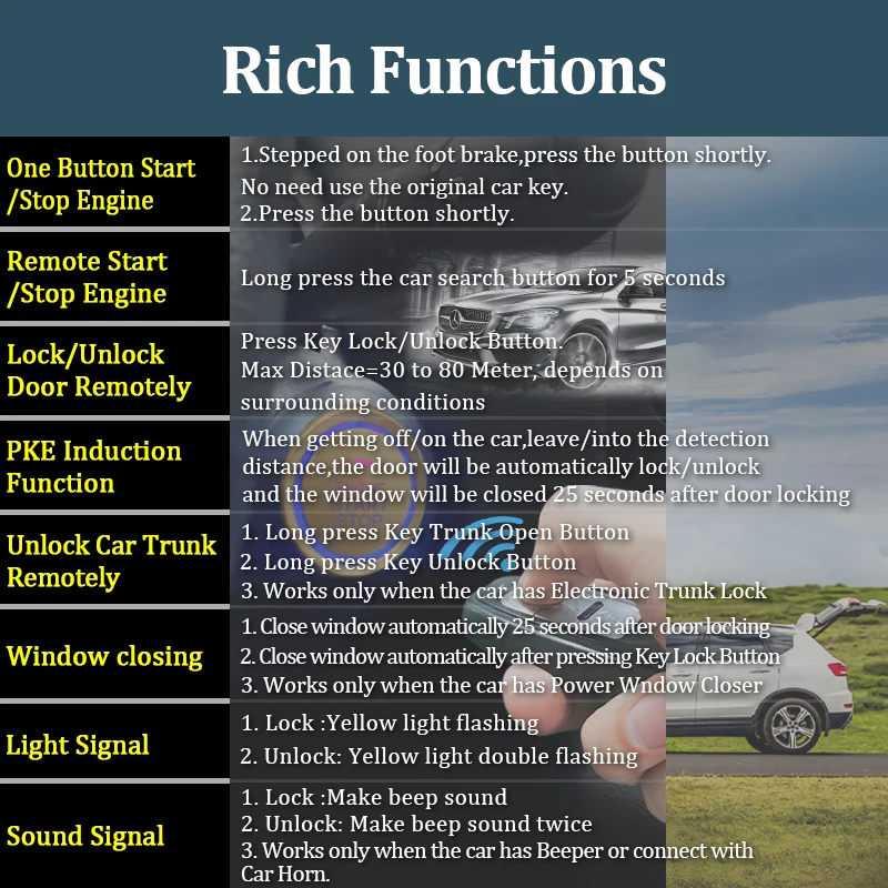 Автомобильная сигнализация, пульт дистанционного управления PKE, вход без ключа, запуск двигателя, сигнализация, кнопка дистанционного запуска, остановка запуска автомобиля