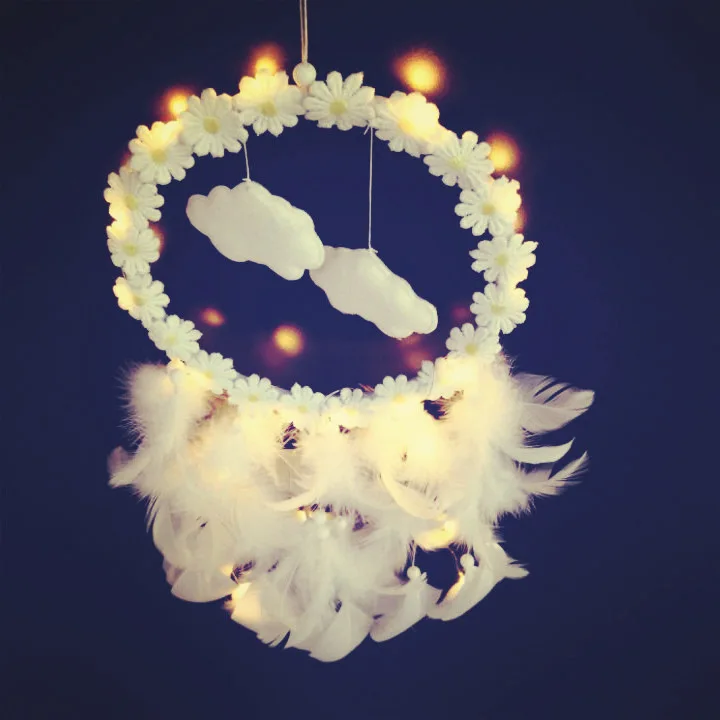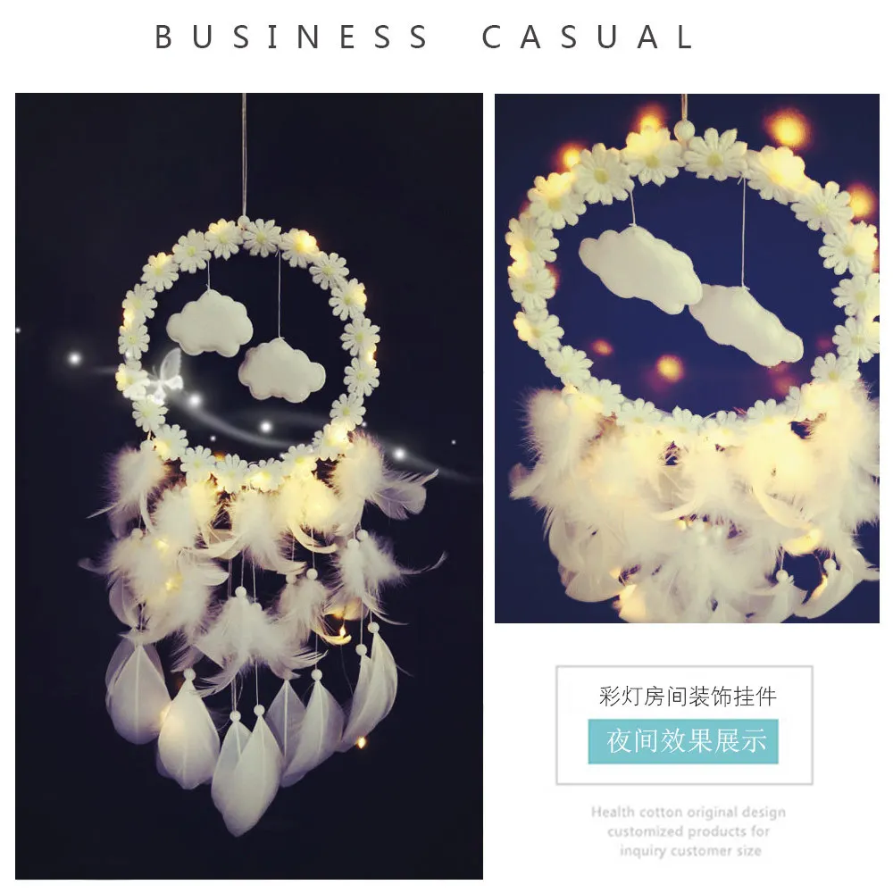 Подвесное облако Ловец снов, домашний декор в стиле бохо, настенные украшения для комнаты для девочек, ромашка светодиодный светильник кой, эстетический декор для комнаты, подарок для детей