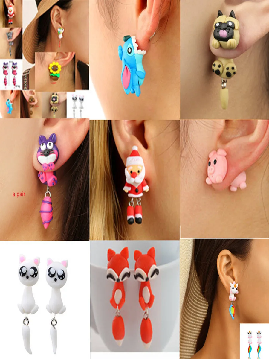 Мягкие разноцветные серьги-гвоздики ручной работы, модные Мультяшные животные, Стив, полимерная глина