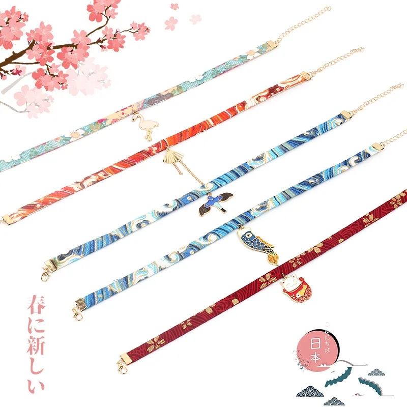 Женский чокер с цветочным принтом, модное ожерелье с подвеской-бахромой сакуры в стиле Харадзюку, Ювелирное Украшение на лето