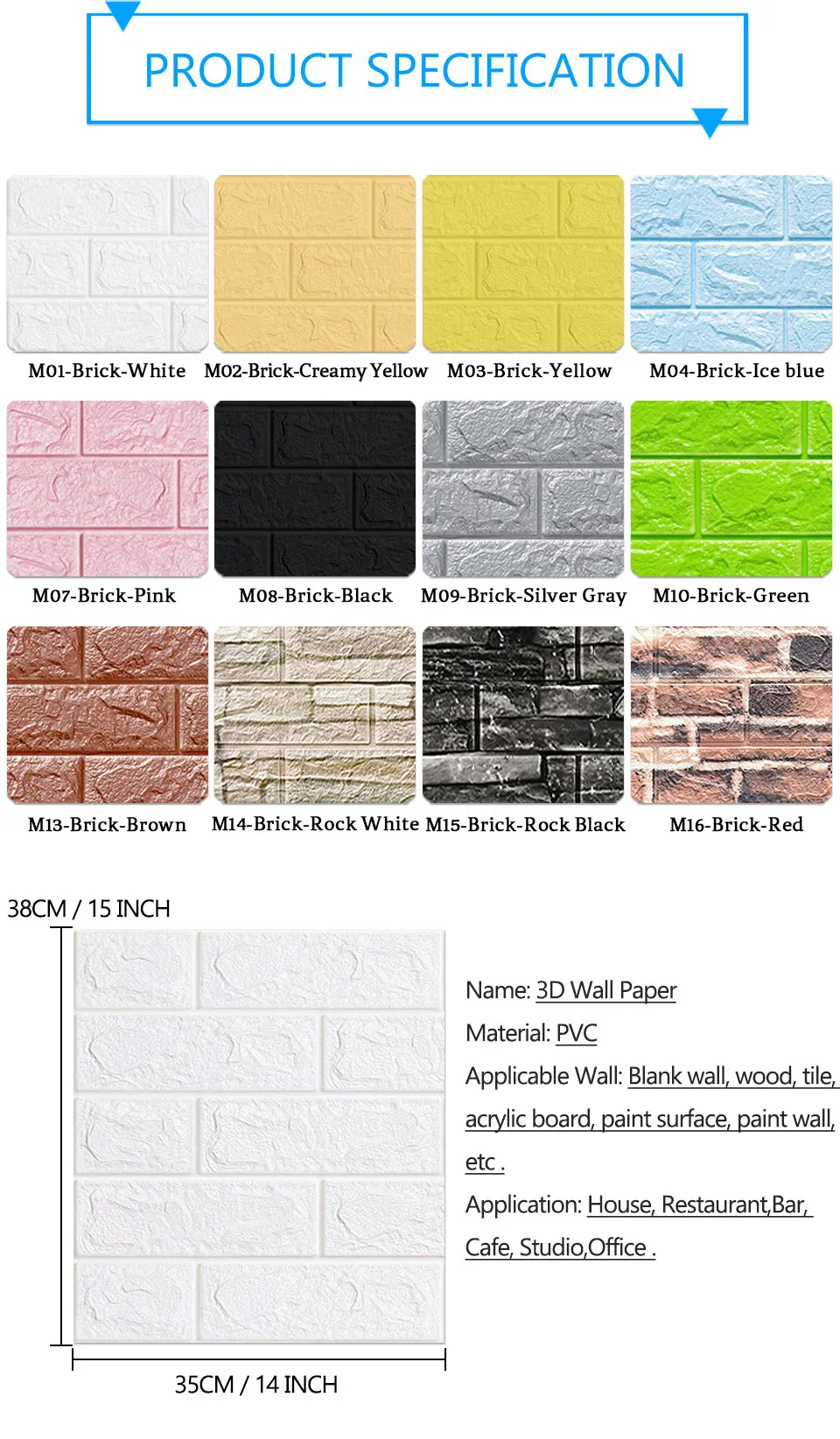 Самоклеящиеся 3D-обои с изображением кирпича, водонепроницаемые пен...
