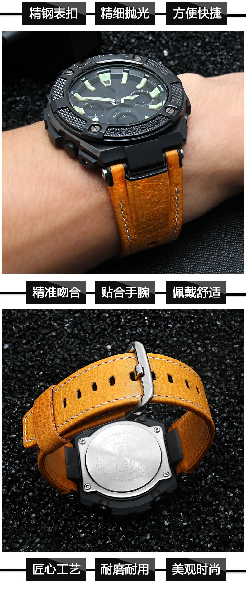 Кожаный браслет для casio GST-B100S130W300GL400GW330 GST-W120LS120W...