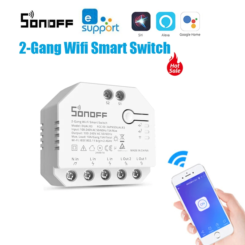 SONOFF DUALR3 выводит ваш дом на следующий уровень. DUALR3-это встроенный модуль беспроводного двойного реле Wi-Fi, который устанавливается за любым стандартным переключателем для передачи его в умный переключатель для беспроводного дистанционного управления с помощью мобильных устройств или голосовой команды. Объединяя ваши бытовые приборы в интегрированную беспроводную сеть, чтобы они общались друг с другом, что удобно для вас управлять и контролировать, включая свет, бытовую технику и моторизованные объекты, такие как рольставни, оконные оттенки, жалюзи, тенты и т. Д. Это сертификат TUV, который обеспечивает надежное количество и улучшенную безопасность, Не беспокойтесь о потенциальном риске пожара и перегрева.Доступны три режима работы. DUALR3 поставляется с режимом переключения, режимом двигателя и режимом счетчика. Одной из типичных особенностей является умное управление рулонными затворами и окнами в режиме двигателя. Модуль переключателя обеспечивает максимальную гибкость для ваших роликовых затворов и оконных теней с помощью пульта дистанционного управления и планирования событий независимо от того, являетесь ли вы дома или нет.Двойной двусторонний контроль. Модуль двойного реле распределяет нагрузку на два входа по сравнению с простым реле, которое этот Рабочий механизм позволяет управлять двумя устройствами независимо друг от друга.Измерение мощности. Более того, модуль имеет функцию мониторинга энергии, которая может использоваться для определения точного энергопотребления подключенных устройств. В этом режиме нагрузка на электрические приборы, подключенные к DUALR3, всегда будет оставаться включенной, и его статус реле не будет изменен в приложении или экстра-переключателе, используется только для отслеживания и измерения мощности.Мощная совместимость. В приложении eWeLink вы можете управлять рольставней, чтобы открыть, закрыть и даже остановить в определенном положении, которое вы хотите. Предназначен для работы с большим количеством типов переключателей, таких как Мгновенный Переключатель, клавишный переключатель, переключатель вкл/выкл, двойной Мгновенный Переключатель и переключатель вкл/выкл/ВКЛ, а затем вы можете управлять своей бытовой техникой или моторизированными устройствами с помощью дополнительного настенного выключателя.Голосовое управление Siri. Создав ярлык Siri в eWeLink, который позволяет управлять занавесками своим голосом. Даже вы можете создать умную сцену, чтобы сохранить связь с другими устройствами в вашем доме, например, попросите Siri закрыть занавес, чтобы включить светильник L1 Lite для съемки фильма ночью дома.