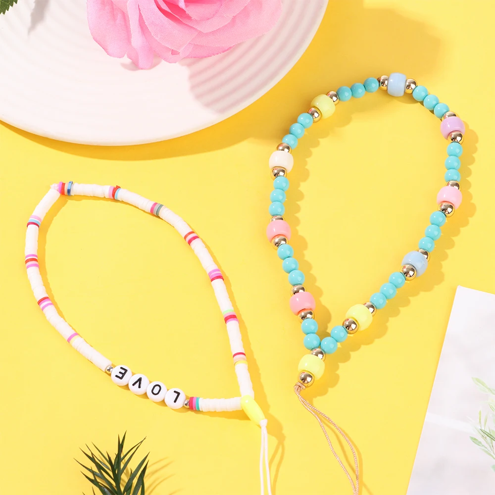 Красочные Анти-потерянный телефонных цепочек Модные Акриловые бусины мобильный телефон ремешок шнурок для сотового телефона чехол подвесной шнур Мягкая Керамика веревка