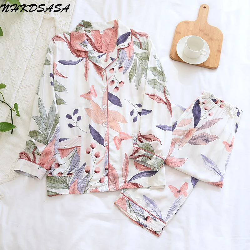 Костюм NHKDSASA из 100% вискозы с длинными рукавами, одежда для сна на весну и лето, женская одежда для дома в простом стиле